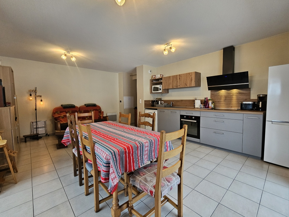 Situé dans la résidence "Le Clos des Rousses", cet appartement de 60m² au 1er étage est composé d’une entrée avec lits superposés de 90cm ainsi que d'une pièce principale avec coin cuisine/repas et canapé. Deux chambres indépendantes avec un lit de 140cm. Salle d’eau et WC séparés. Un accès extérieur sur balcon complète le tout. Stationnement privé en parking souterrain. Vue sur l’arrière d’un supermarché.