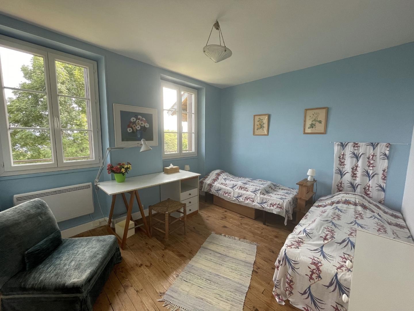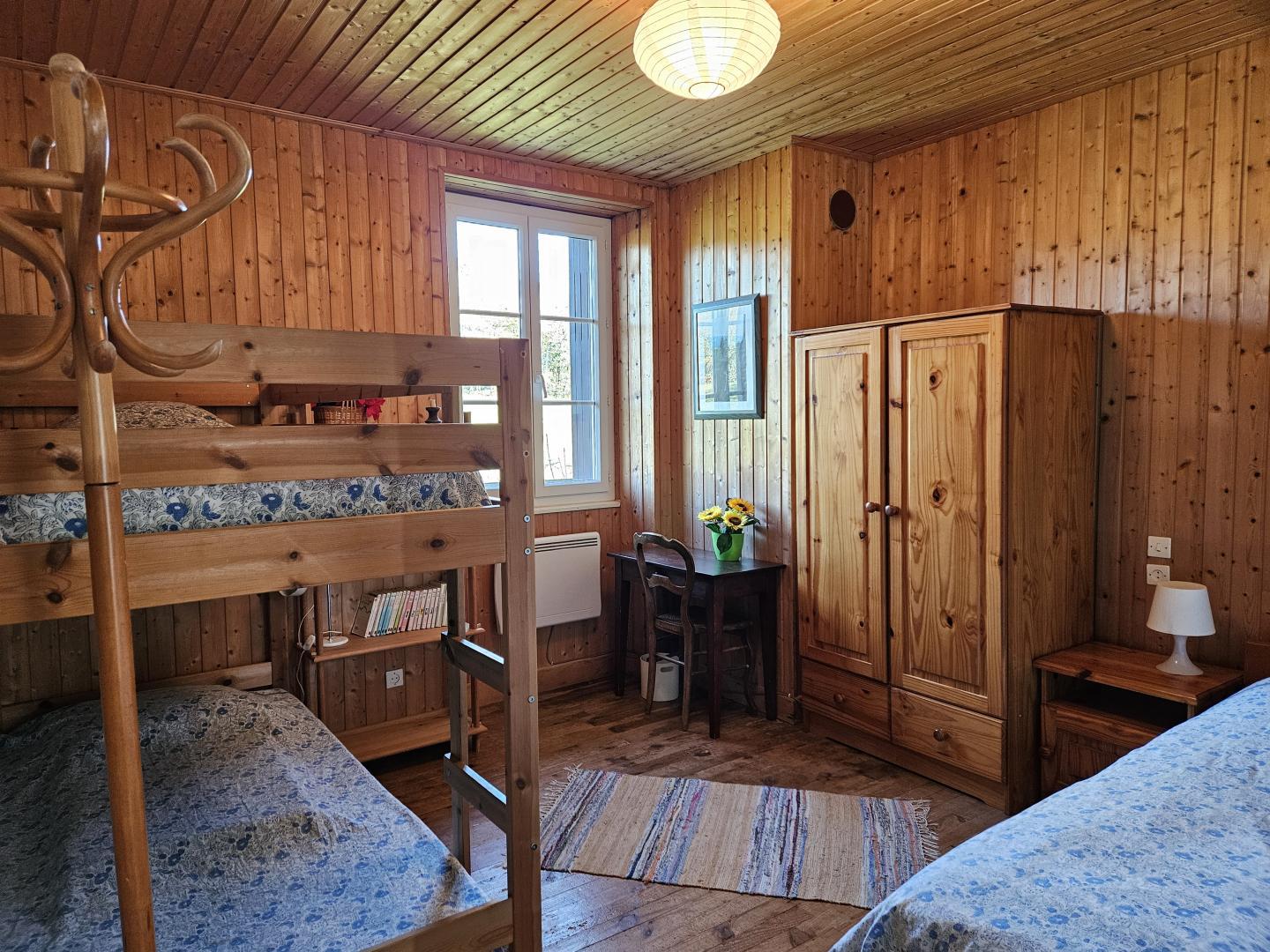 Maison mitoyenne isolée. Au rez de chaussé : cuisine, salle à manger, salon, salle d'eau, 1 chambre avec 1 lit double, WC indépendants. A l'étage: une première chambre avec 1 lit 2 places, une chambre avec 3 lits 1 place (dont 2 superposés) et une chambre avec 2 lits 1 place, salle de bain, WC indépendants. Des volets occultants dans les chambres. Terrain attenant, salon de jardin, barbecue, emplacement vélos sous l'auvent, parking à proximité. Chauffage électrique, superbe point de vue sur le massif du Jura. Charges non comprises. Indication sur le montant des charges en sus de la location: une semaine en hiver reviendra à environ 150€, et en eté à 50€. Prévoir des pneus neige ou des chaines l'hiver. Eau de citerne (potable selon examen sanitaire). Wifi. Magnétoscope, lecteur CD et DVD, congélateur. Le linge de maison non fourni.