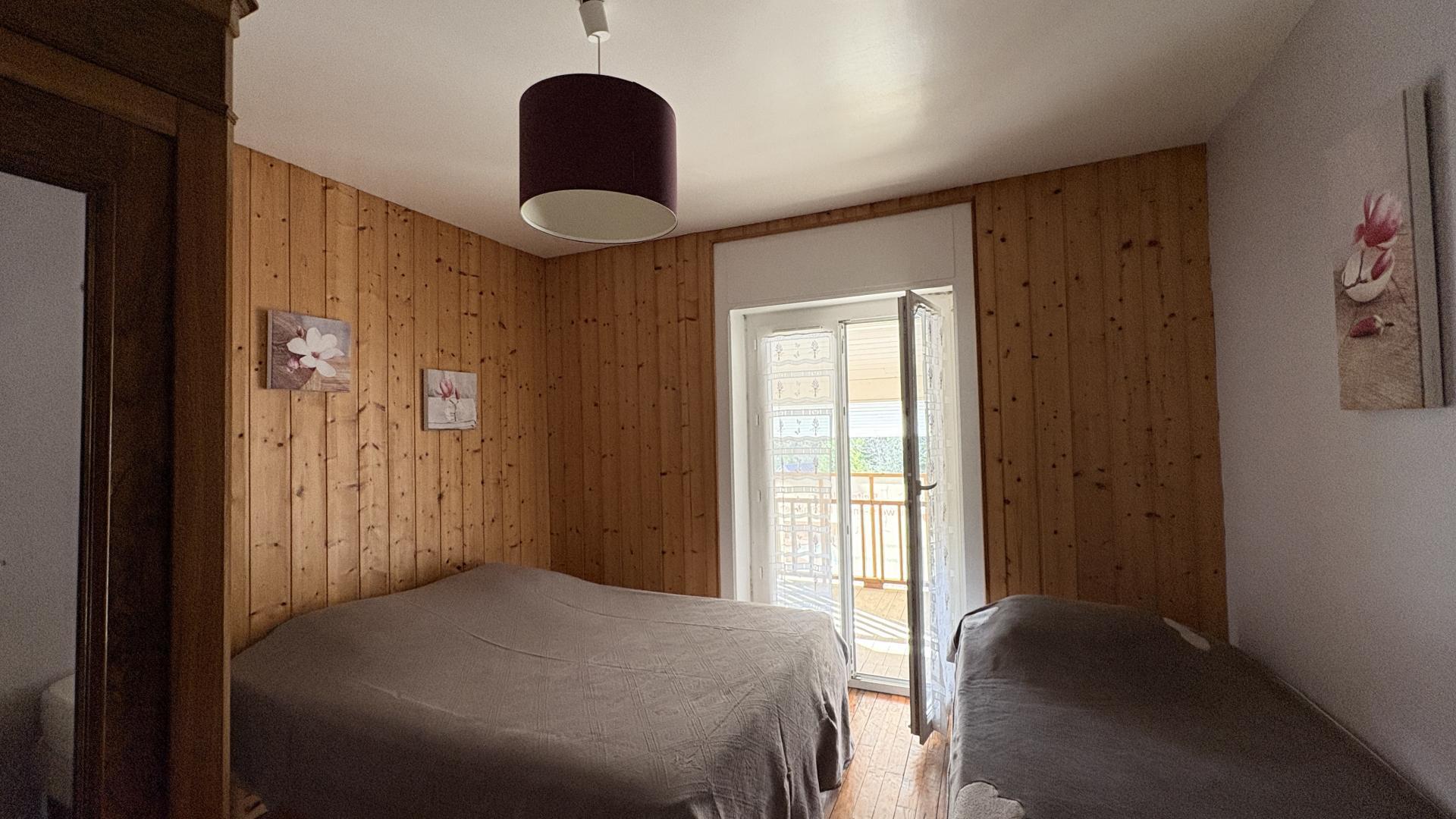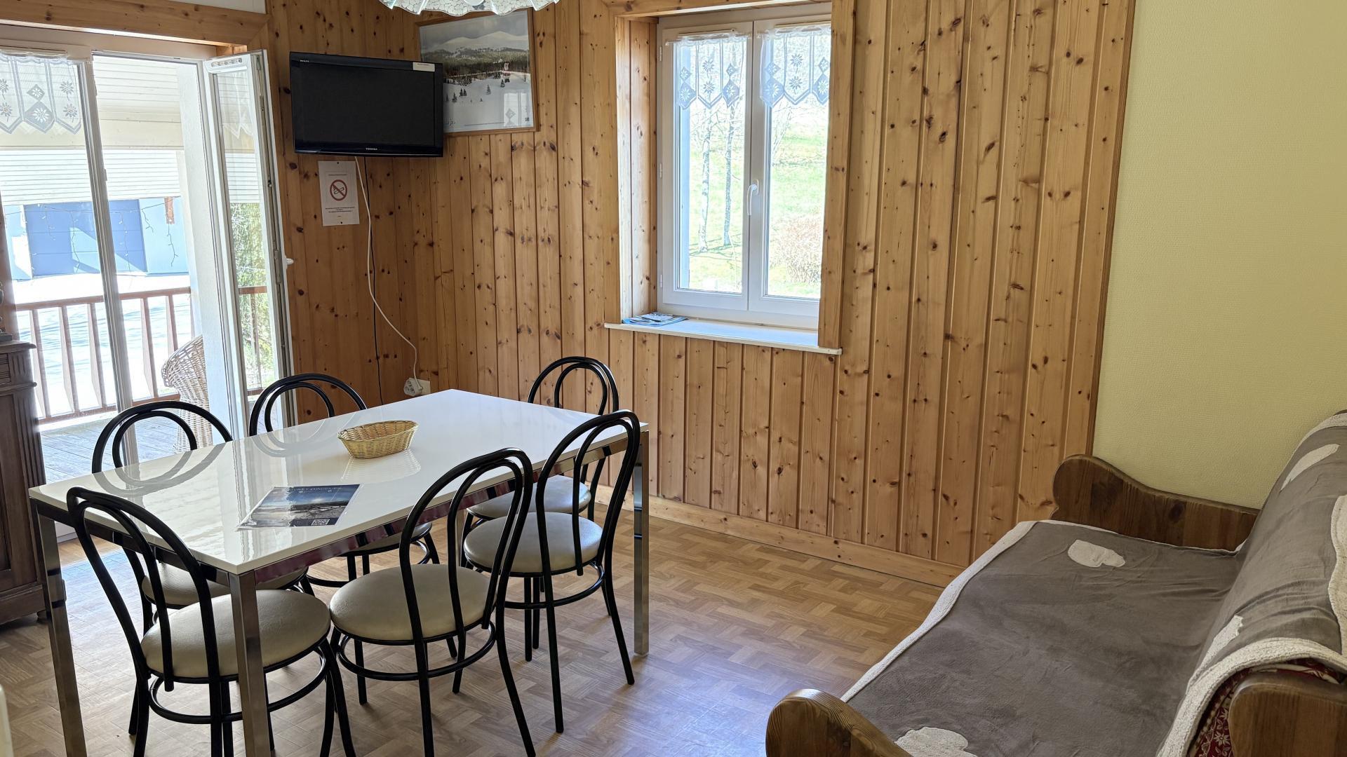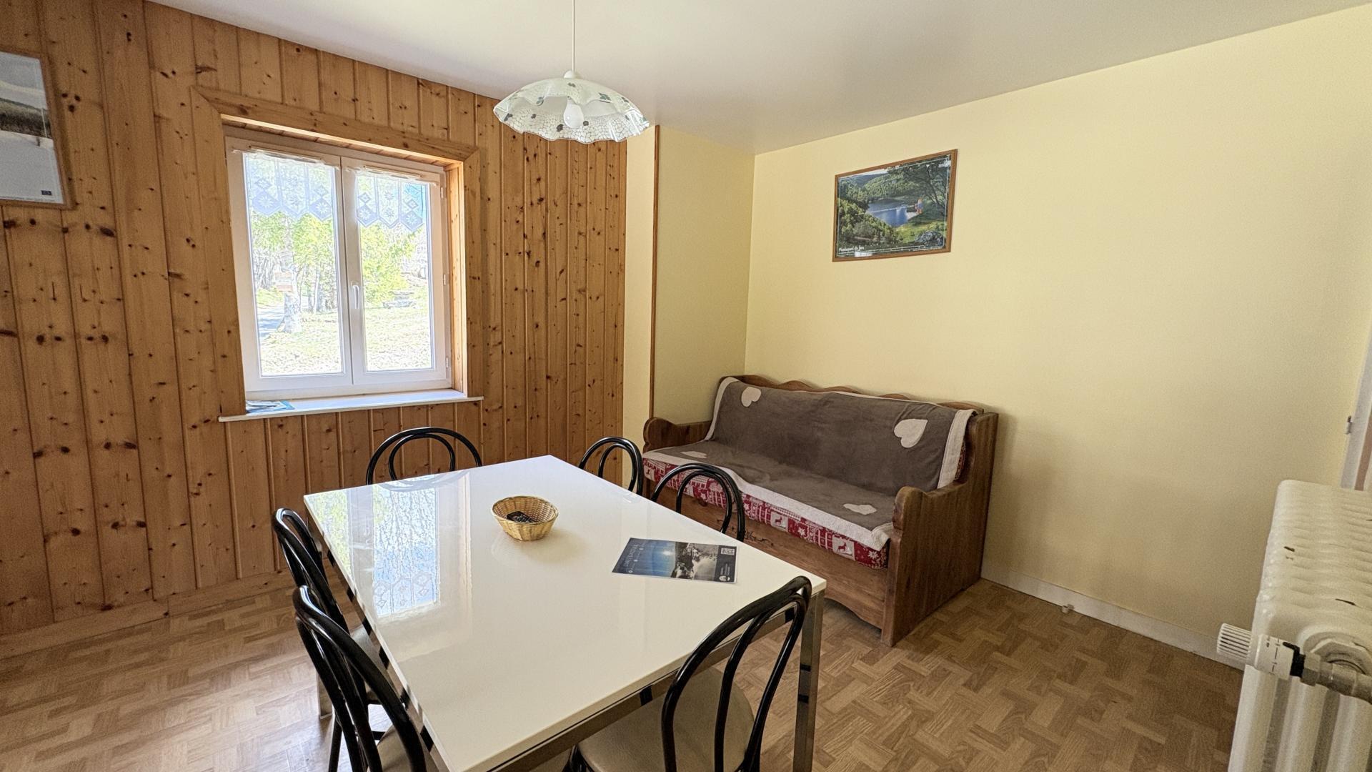 Logement à l'étage d'une maison où se trouvent d'autres appartements. Cuisine, séjour (canapé convertible), ch1: 1 lit 2 pl, ch2: 1 lit 2 pl, 1 lit 1 pl, salle d'eau, wc indépendants, lit et chaise bébé sur demande, option ménage, terrain attenant non clos, salon de jardin, barbecue, aire de jeux (bac à sable, balançoire, tennis de table). Piscine intérieure chauffée accessible toute l'année. Chauffage central. Toutes charges comprises. Les lits sont équipés de couettes. Lave linge en commun. Connexion wifi gratuite.