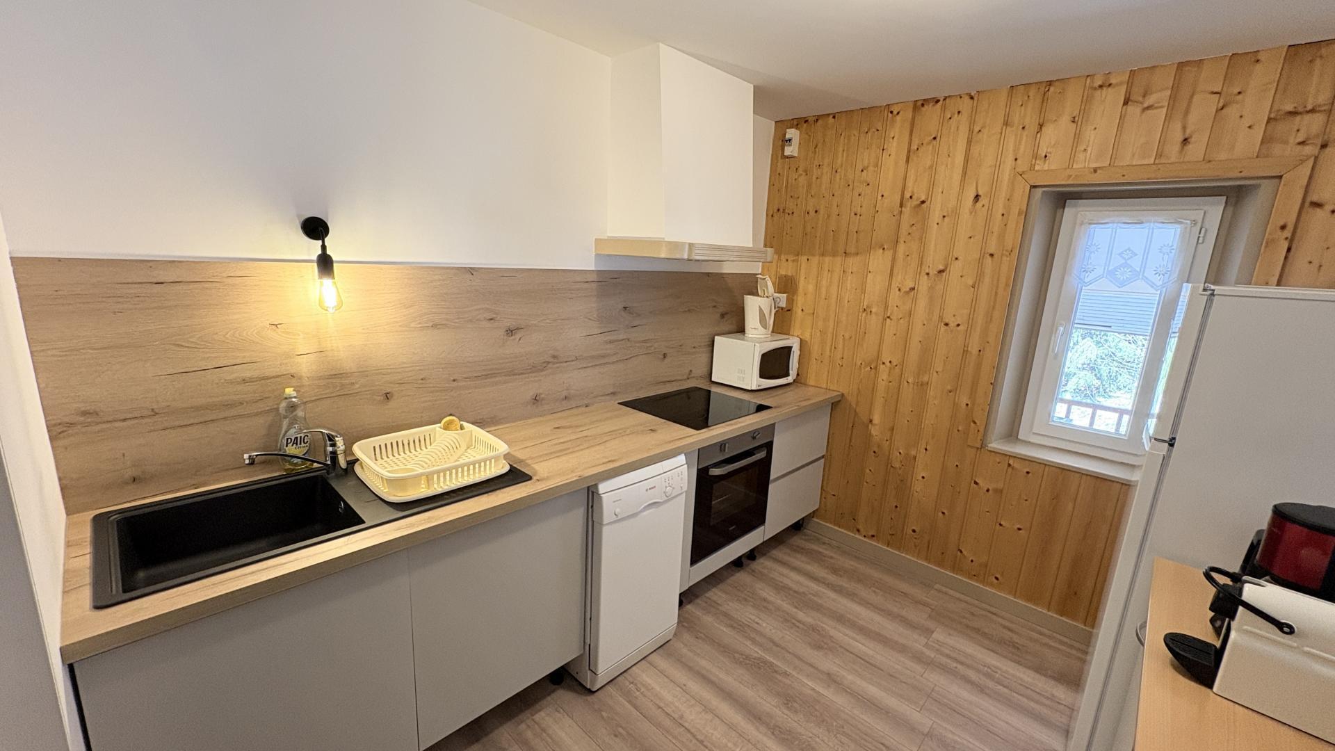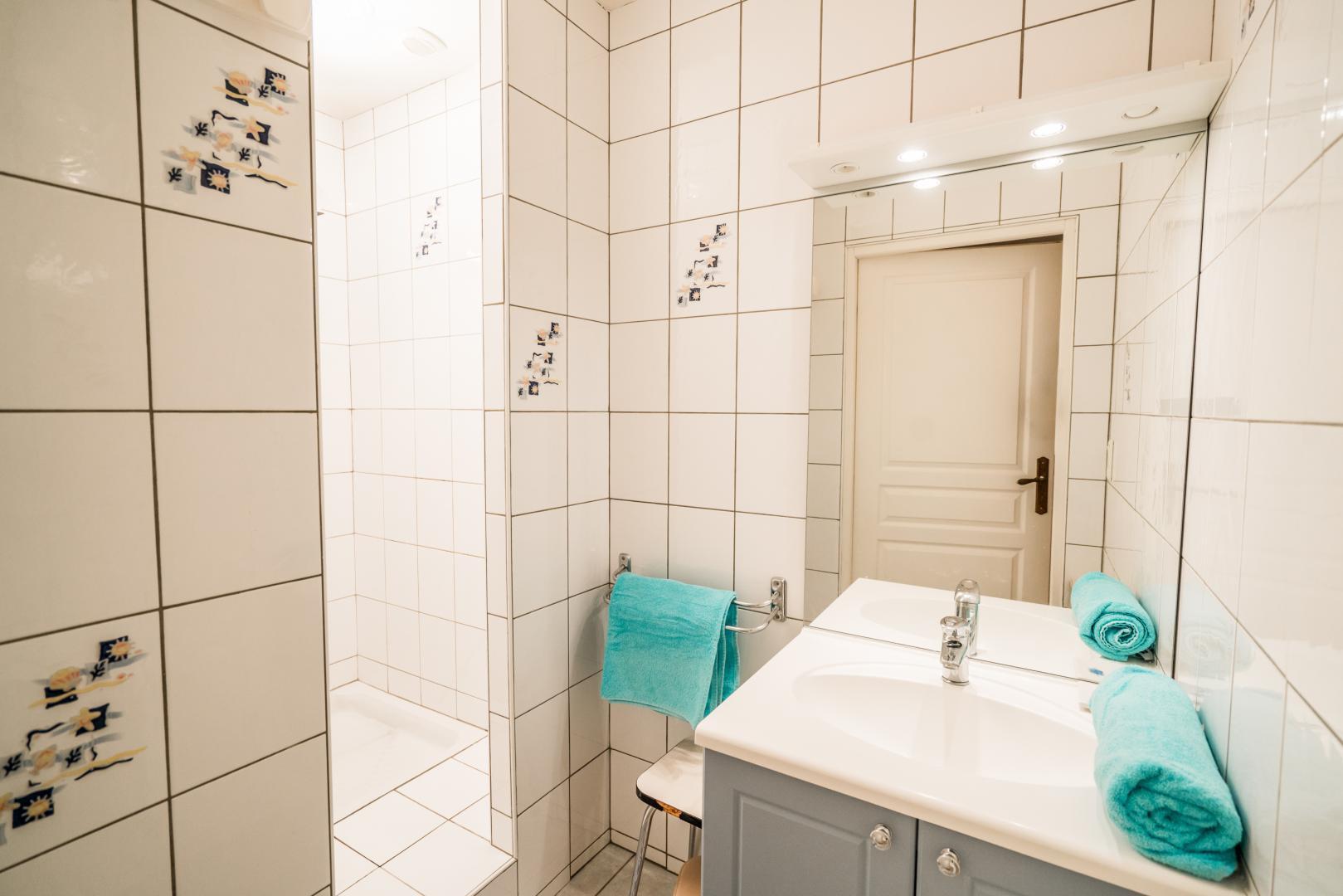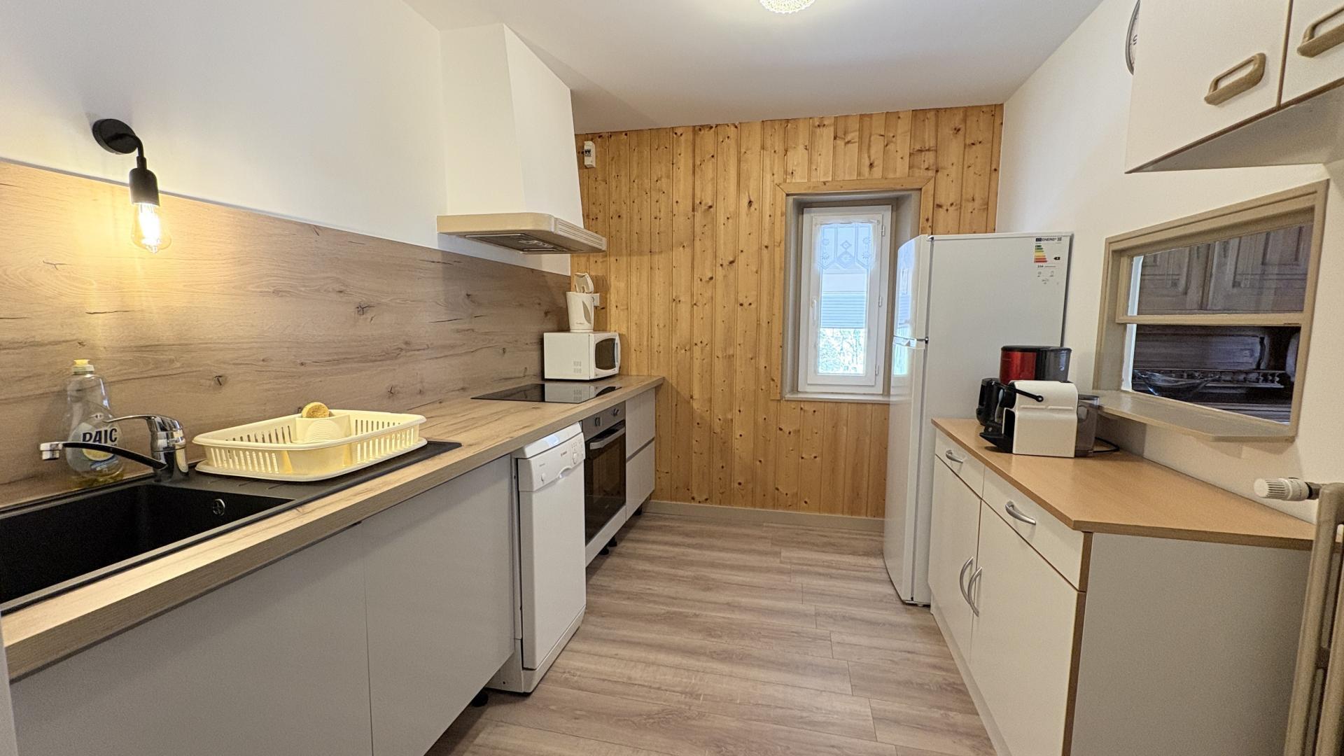 Logement à l'étage d'une maison où se trouvent d'autres appartements. Cuisine, séjour (canapé convertible), ch1: 1 lit 2 pl, ch2: 1 lit 2 pl, 1 lit 1 pl, salle d'eau, wc indépendants, lit et chaise bébé sur demande, option ménage, terrain attenant non clos, salon de jardin, barbecue, aire de jeux (bac à sable, balançoire, tennis de table). Piscine intérieure chauffée accessible toute l'année. Chauffage central. Toutes charges comprises. Les lits sont équipés de couettes. Lave linge en commun. Connexion wifi gratuite.