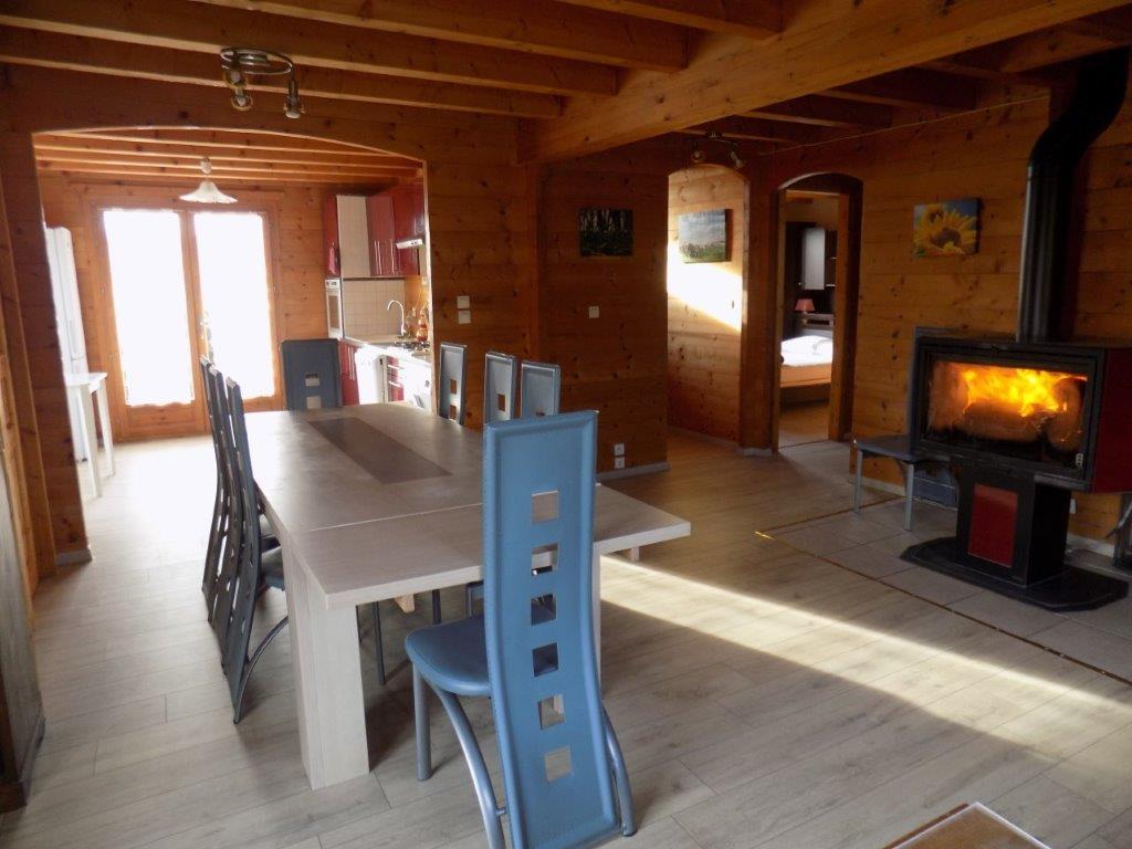 Au coeur de la région des lacs, magnifique chalet, au RDC : séjour-salon coin cuisine intégrée, poêle à bois, lecteur DVD, sèche linge, Ch1 : 1 lit 2 pl, Ch2 : 1 lit 2 pl, salle d'eau, à l'étage : Ch3 : 1 lit 2 pl, Ch4 : 1 lit 2 pl, 2 lits 1 pl, salle de bains, jardin, barbecue, terrain attenant non clos. Toutes charges comprises. WIFI. Le bois est fourni, pas le nécessaire pour allumer (allume-feux, petit bois)