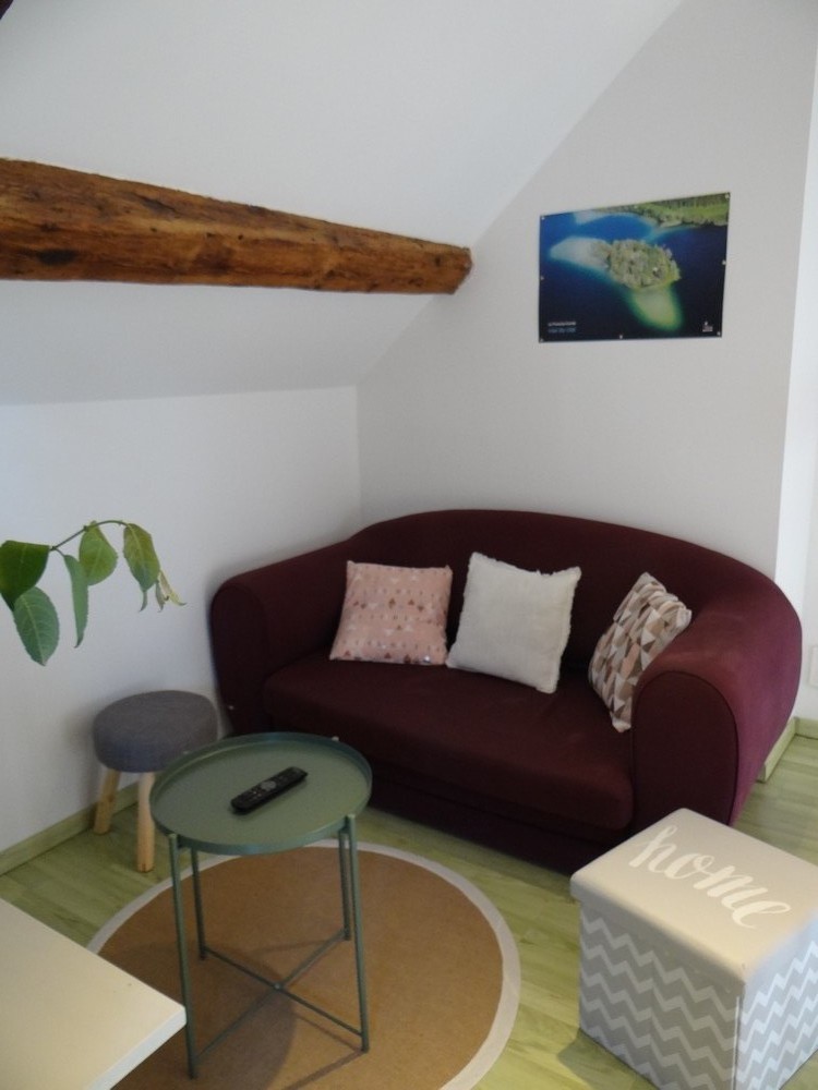 A seulement 2 km du centre ville de Dole,dans un quartier retiré de la ville et très calme, ancien four à pain entièrement réaménagé en un joli gîte totalement indépendant. Au rez-de-chaussée : coin-cuisine équipé, ch 1 : 1 lit 2 pl, salle d'eau (douche hydro-jet). A l'étage :mezzanine avec coin salon (télévision, canapé) et 2 lits 1 pl. Chauffage électrique. Terrasse avec salon de jardin, barbecue. Terrain attenant non clos.