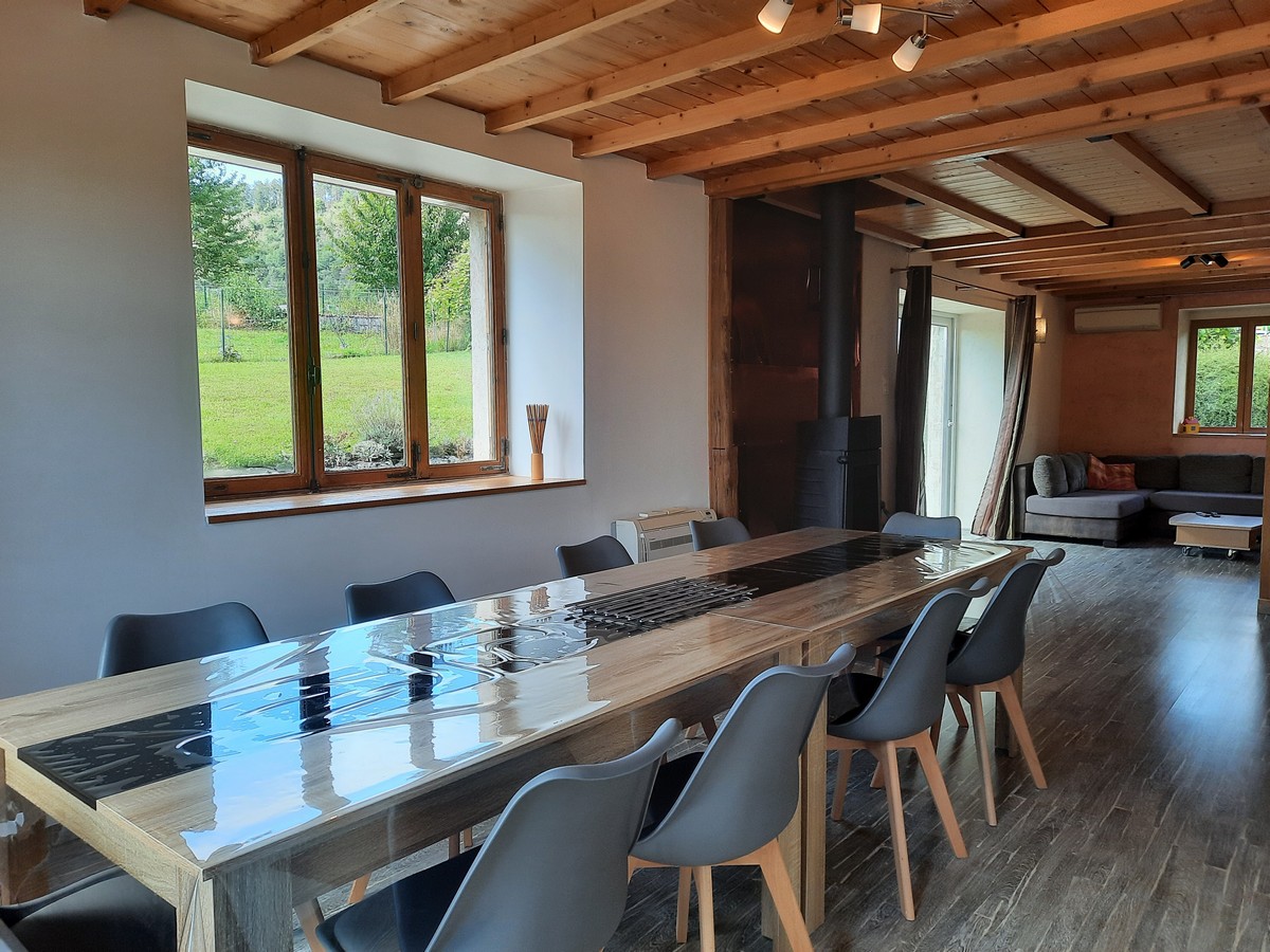 Très bien situé au coeur de la Petite Montagne, à proximité du barrage et du lac de Vouglans, venez découvrir en famille ou entre amis cette maison familiale ou il fait bon vivre. Au rez-de-chaussée, cuisine entièrement équipée, vaste salle à manger salon avec canapé et télévision écran plat, salle d'eau avec grande douche et wc indépendants. A l'étage, 3 chambres : l'une avec un lit de 160x200cm, la seconde avec 2 lits de 90x200 pouvant former un grand lit de 180cm et la dernière avec 4 lits de 90x200 dont deux lits superposés. Dressing, buanderie avec lave linge et sèche linge, aspirateur robot, nécessaire de repassage. Salle de bain avec grande baignoire et double vasque. A l'extérieur, cour, terrasse équipée d'un salon de jardin, plancha et barbecue, et terrain attenant clos à votre disposition (1500m² au total). Connexion internet via la fibre optique. N'attendez plus pour réserver ! (Coordonnées GPS: Latitude: 46.36051841326494 Longitude: 5.612798323592347)