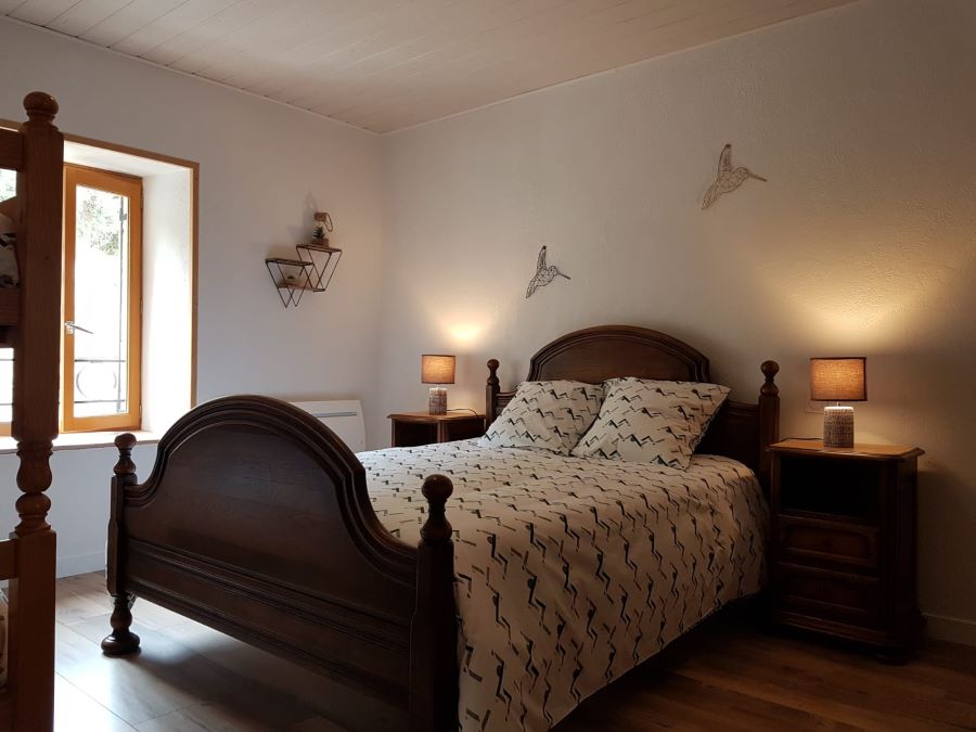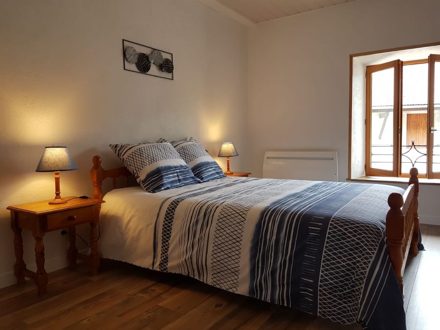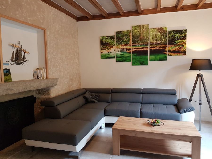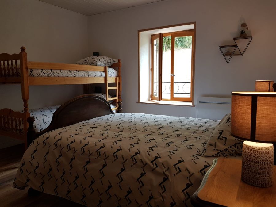 Cette jolie maison mitoyenne en pierre, entièrement rénovée se compose d'une cuisine intégrée toute équipée, d'un salon, d'une salle d'eau et d'un WC indépendant. A l'étage, une chambre avec 1 grand lit et une seconde chambre avec un grand lit et 2 lits superposés. Coté extérieur, une terrasse avec salon de jardin, transat, table de ping-pong et barbecue vous permettra de profiter des beaux jours. Pour votre plus grand confort les lits seront faits à votre arrivée. Ce gîte se situe à 2 kilomètres du célèbre barrage du lac de Vouglans et à quelques kilomètres des plages où vous pourrez profitez des eaux turquoises du lac, les plus téméraires s'adonneront aux ski nautique ou au jet-ski.