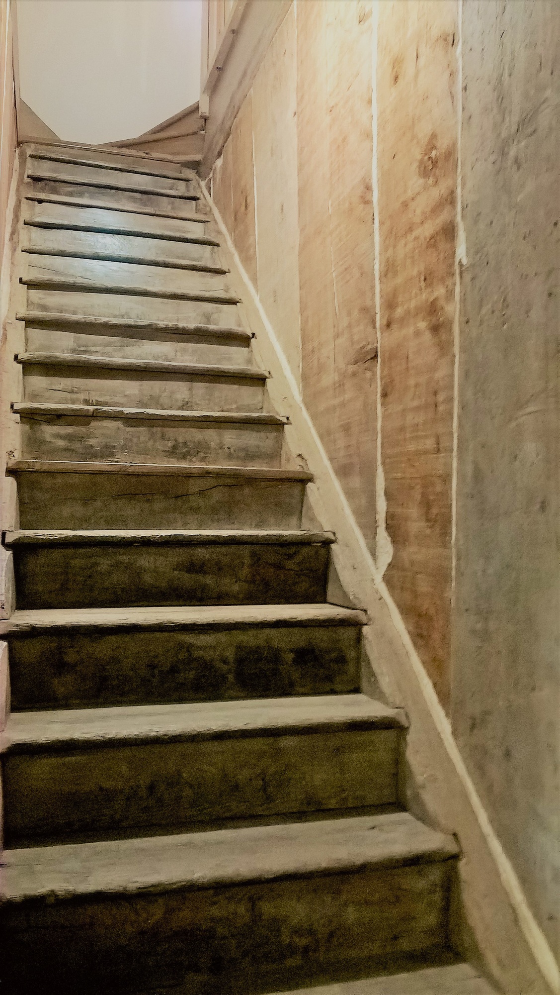 On y accède par de beaux escaliers anciens, témoins de l'histoire de la maison, ancien relais de diligence.