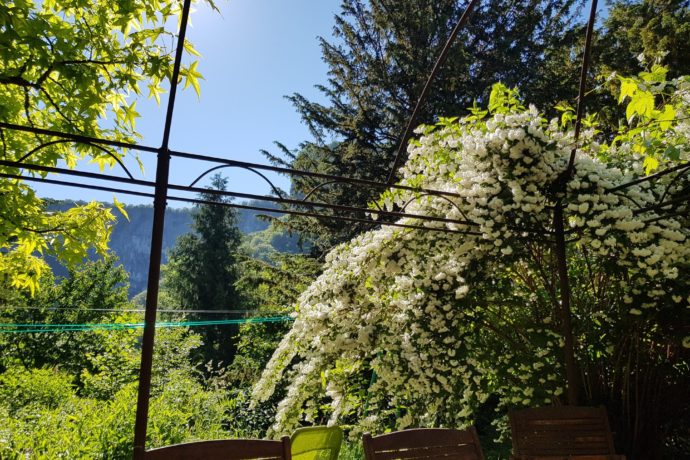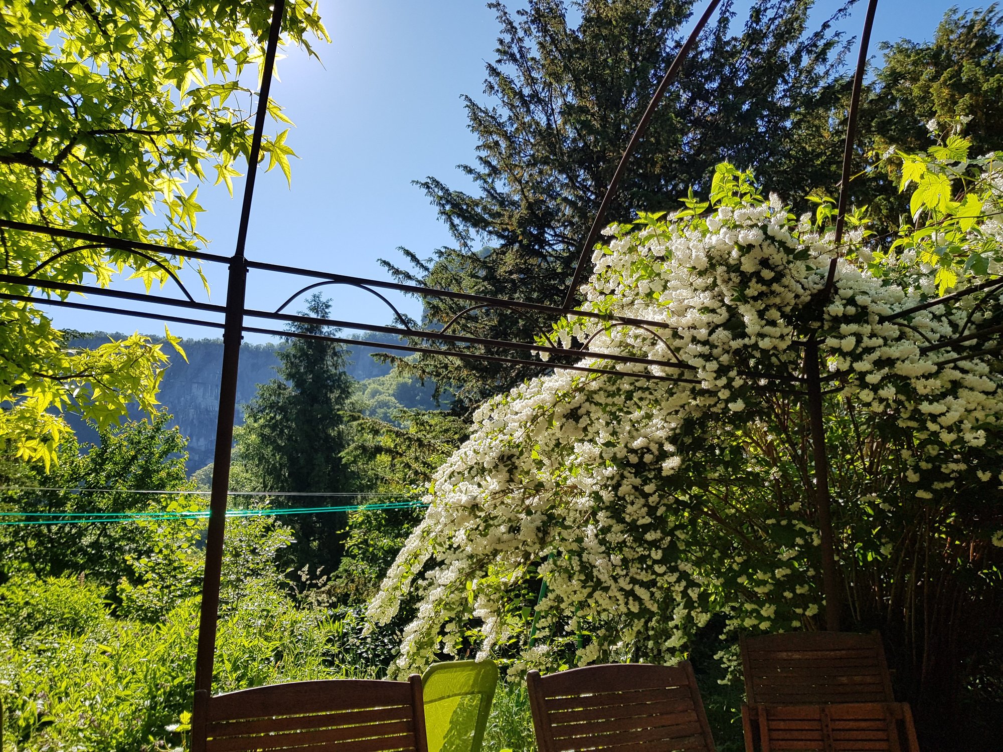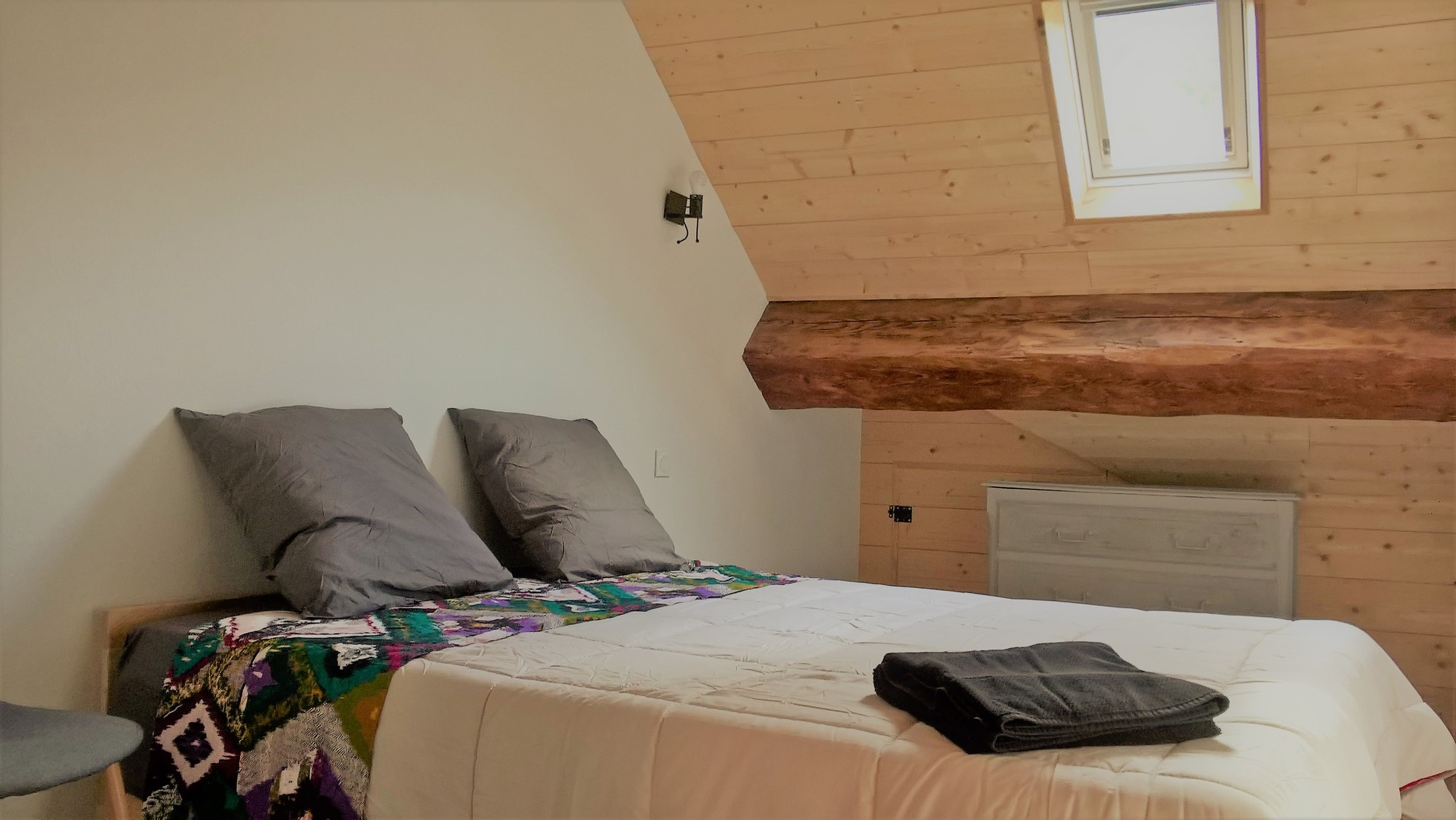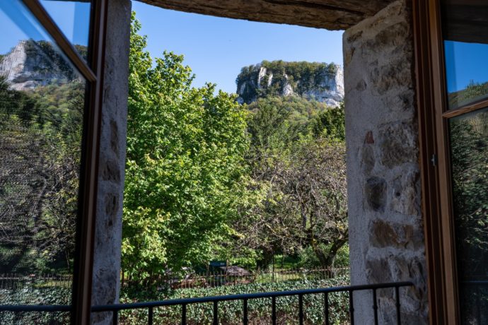 Au troisième étage, le gîte du Relais vous accueille en son sein, dans une ambiance cosy et rustique grâce aux poutres apparentes, une décoration minimaliste, beaucoup de bois et une magnifique vue sur la reculée.