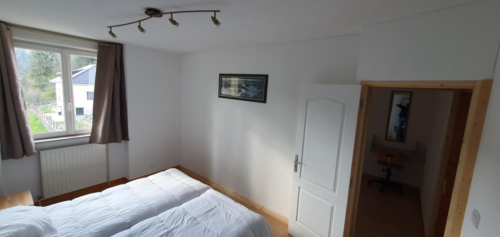 Cet appartement situé au 2ème étage d'une petite résidence, à proximité de la route menant à la Station des Rousses, se compose d'une pièce de vie avec cuisine toute équipée, coin salle à manger avec accès à un balcon de 7 m² équipé d'un salon de jardin et d'un barbecue, d'un espace salon avec TV, de 2 chambres, l'une avec 2 lits simples (90*190) et la seconde avec 1 lit double (140*190), d'une sale d'eau avec douche et d'un WC indépendant. Pour votre plus grand confort, les lits seront faits à votre arrivée. Idéalement situé pour la pratique des loisirs de pleine nature : ski, randonnées, raquettes, vous pourrez également découvrir le musée de la lunette à Morbier, visiter les caves à Comté du Fort des Rousses et partir en excursion à la journée à la découverte de Genève et du lac Léman. Vous trouverez également tous les commerces à proximité : supermarché, restaurant, bureau de tabac, boulangerie...