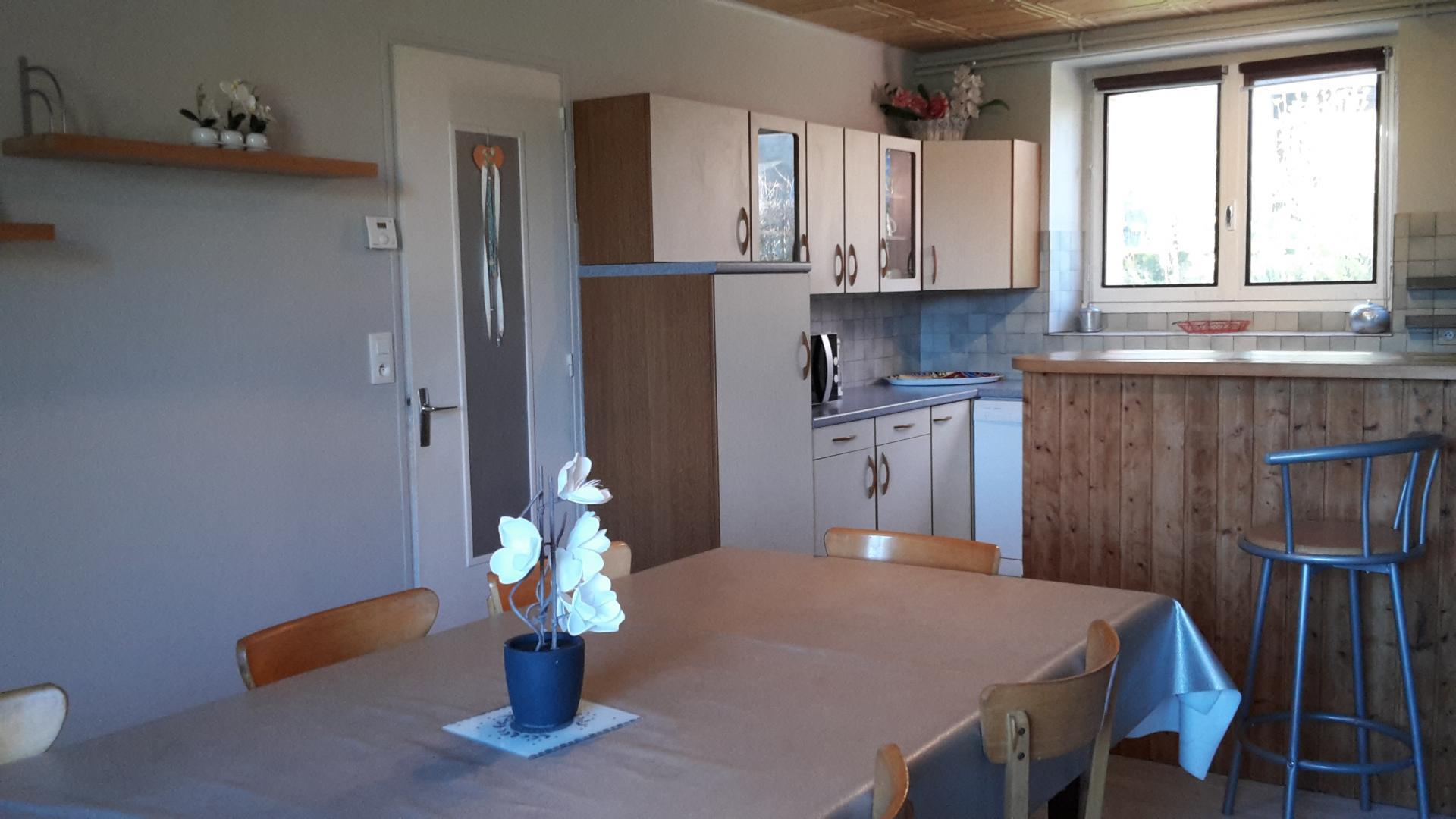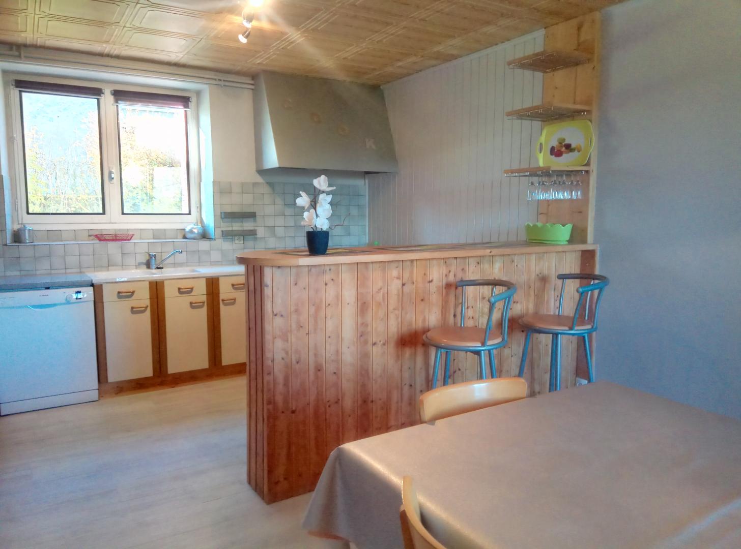 Maison indépendante située dans un petit village aux portes du Parc Naturel Régional du Haut Jura et à proximité des lacs et cascades. Au RDC: hall d'entrée, vaste séjour-salon avec TV et TNT. Cuisine indépendante toute équipée, salle d'eau, wc indépendant. A l'étage: deux chambres en enfilade avec 2 lits 1 pl superposés et 1 lit 1 place dans la 1ere et 1 lit 2pl dans la 2eme. 3 autres chambres avec chacune 1 lit 2 places, salle de bains avec wc. Terrain attenant entièrement clos avec salon de jardin, barbecue et balançoires. Deux grands garages. Sentiers de randonnées sur place. Possibilité de loger 10 personnes après accord du propriétaire. 2 animaux maximum acceptés