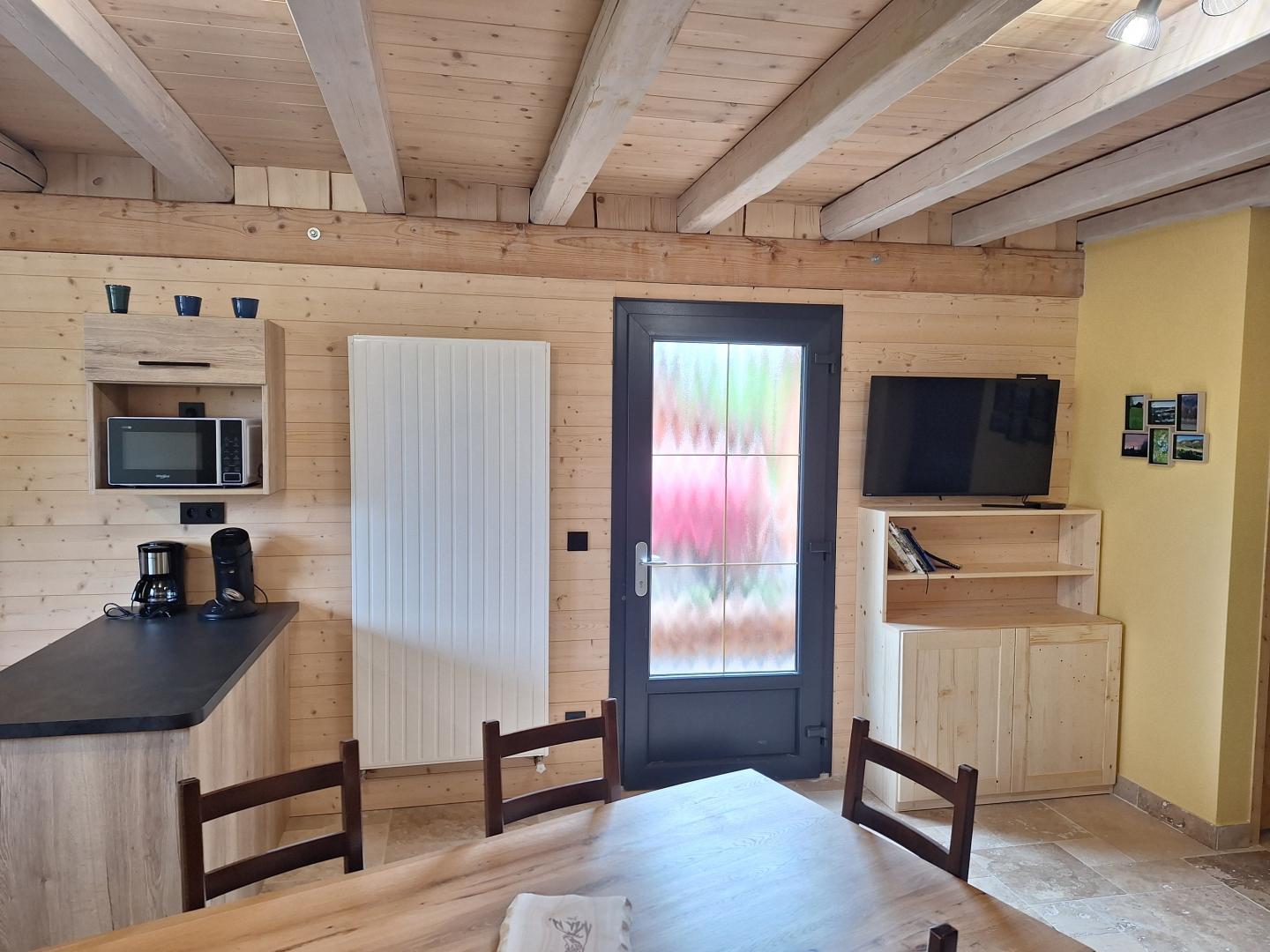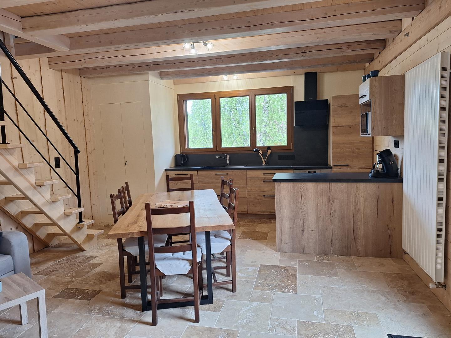 Ce gîte entièrement neuf se situe dans une maison comportant un second appartement en location. Il se compose au rez-de-chaussée d'une pièce de vie avec cuisine équipée, salle à manger et salon avec canapé et TV, d'une chambre avec 1 lit double (140*190), d'une salle d'eau avec douche et d'un WC indépendant. A l'étage, une mezzanine avec 3 lits simples (90*190). Pour votre plus grand confort, les lits seront faits à votre arrivée. Côté extérieur, vous pourrez profiter des beaux jours sur la terrasse aménagée avec salon de jardin et plancha gaz. Idéalement situé, à 5 mns des lacs d'Etival (le Petit, le Grand et la Fauge), à15 mns du lac de Clairvaux les Lacs et à 30 mns des cascades du Hérisson. Possibilité de louer le G2670 situé dans la même maison pour 5 personnes supplémentaires