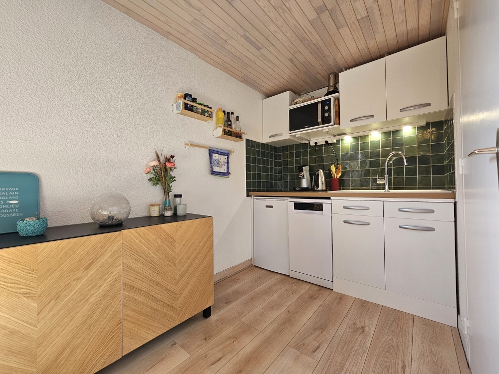Situé dans la résidence "Le Chazar", ce studio de 28m² au 3ème étage avec ascenseur est composé d'une pièce principale avec canapé convertible en 140cm, espace repas et coin cuisine. Mezzanine avec un lit de 140cm et un lit de 90cm.