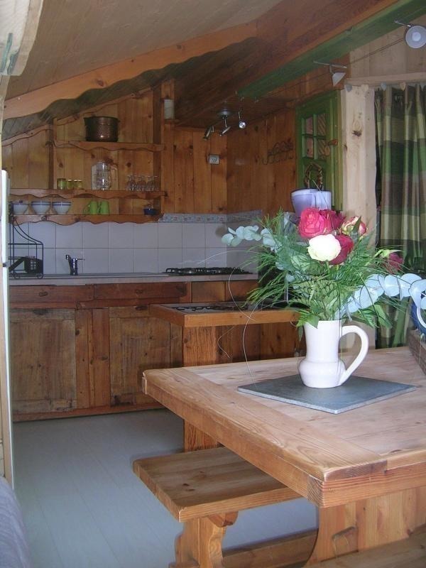 En pleine nature, à proximité des pistes de ski de fond et de nombreux circuits de randonnées, très joli logement indépendant aménagé au 1er étage d'un chalet de montagne, décoré avec goût. Coin-cuisine équipée , séjour (1 lit 2 pl dans une alcôve), salon, banquette lit gigogne 2 pl, 1 chambre avec 1 lit 2 pl, salle d'eau (douche et WC), chauffage central, balcon, grand terrain attenant non clos, salon de jardin, barbecue. Connexion internet gratuite. Lecteur DVD. Toutes charges comprises. Taxe de séjour comprise. Lave linge en commun avec la propriétaire.