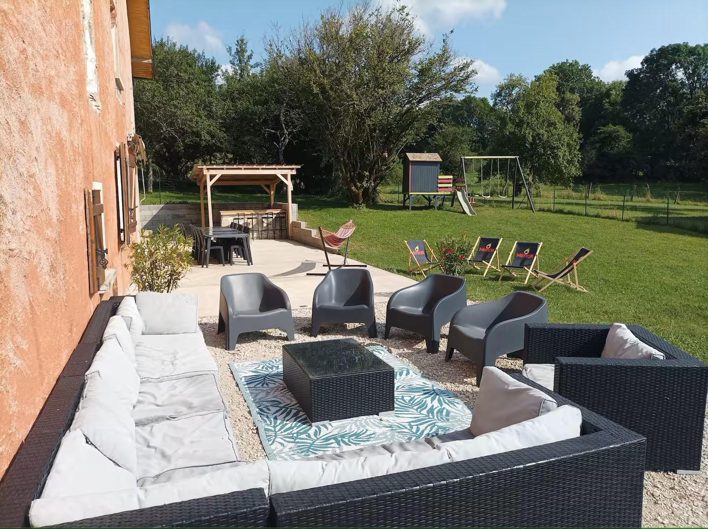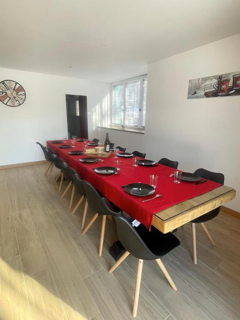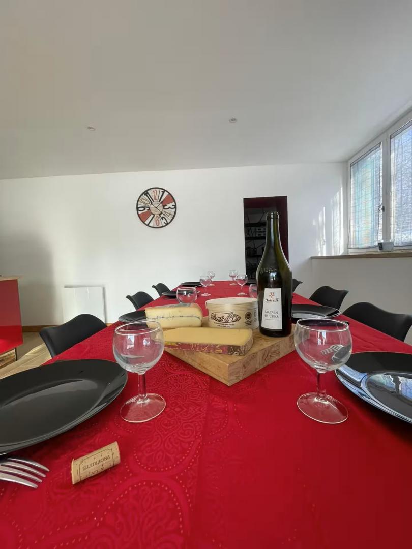 Cette spacieuse maison de vacances entièrement rénovée sera le lieu idéal pour vous retrouver en famille ou entre amis! Elle se compose au RDC d'un vestiaire, d'un salon de 60m² avec TV et grand canapé panoramique, d'un coin jeu avec plus de 50 jeux de société, 40 DVD films, 40 DVD dessins animés, divers jouets et livres, d'une cuisine toute équipée, d'une salle de bain avec baignoire, d'un WC indépendant et d'une buanderie. A l'étage, 1 WC indépendant et 4 chambres : -1 dortoir avec 6 lits superposés -1 chambre double avec 1 lit 140*190 et sa salle d'eau privative (douche) -2 chambres avec chacune 1 lit double 160*200 et chacune avec sa salle d'eau privative (douche) Côté extérieur vous trouverez : terrain clos avec terrasse et bar barbecue à charbon, balançoire, terrain de pétanque, salon de jardin, table et chaises extérieur Un parking privé pour plusieurs voitures se situe devant la maison. Matériel pour bébé gratuit sur demande ( 2 lits parapluie, 2 chaises hautes, table à langer, transat up and down, pot, anneau de bain, baignoire + transat de bain, stérilisateur, poussette canne, jouets 1er âge) Idéalement situé, à 10 min en voiture de Clairvaux les lacs où vous trouverez tous les commerces et commodités : 3 supermarchés, boulangeries, boucherie, fromageries, pharmacie, poste, boutiques de souvenirs, restaurants, cabinet médical...ainsi que le lac de Clairvaux avec plage aménagée et surveillée en été. Activités printemps/été/automne : Grottes, cascades, belvédères, lacs de baignade, randonnées, canoë/kayak, accrobranche, canyoning, route des vins, fruitière à Comté, cave d affinage, pêche... Lac de Clairvaux 7 km, lac de Bonlieu 7 km, lac d Etival 13 km, lac de Chalain 14 km, lac de Vouglans entre 15 et 30km ( plusieurs plages aménagées) Activités hiver : Ski de fond, Morbier à 20 min et Prenovel à 30 min, ski alpin:Morbier à 20 min ( débutants), Bellefontaine à 30 min ( débutants), Les rousses 50 min ( tous niveaux)