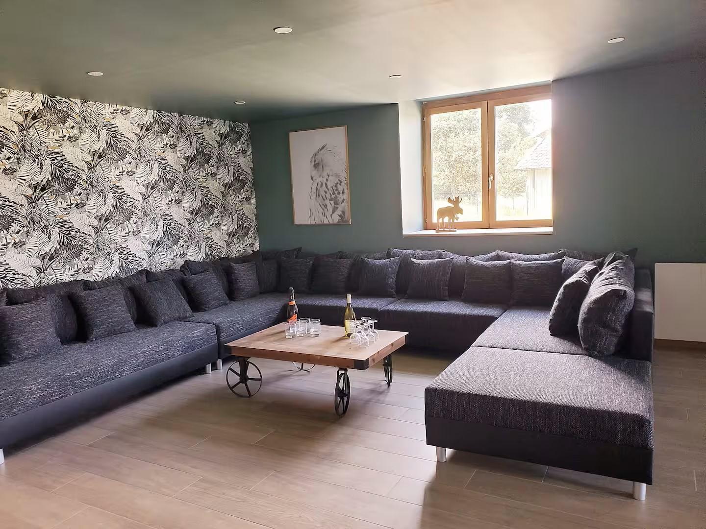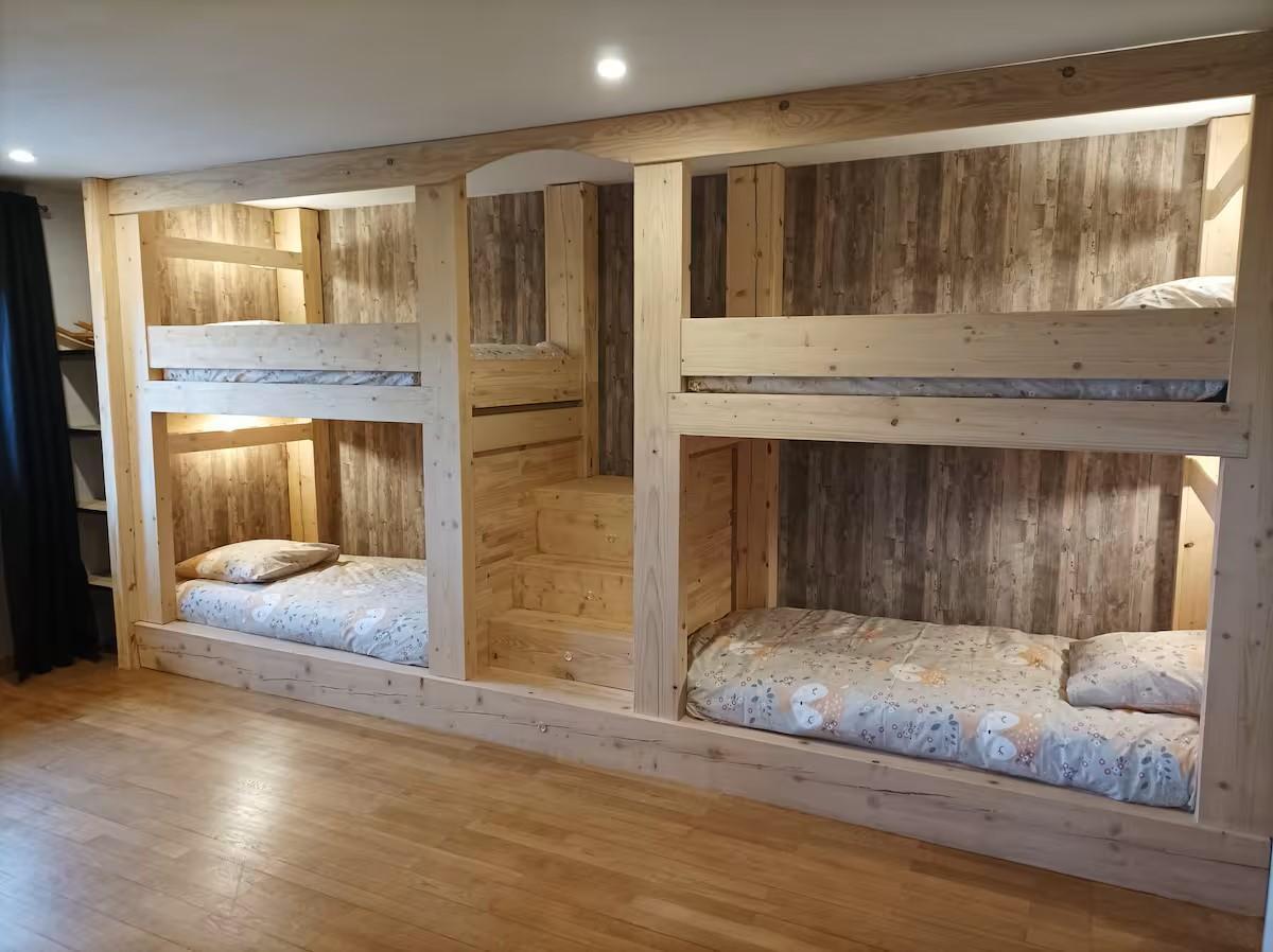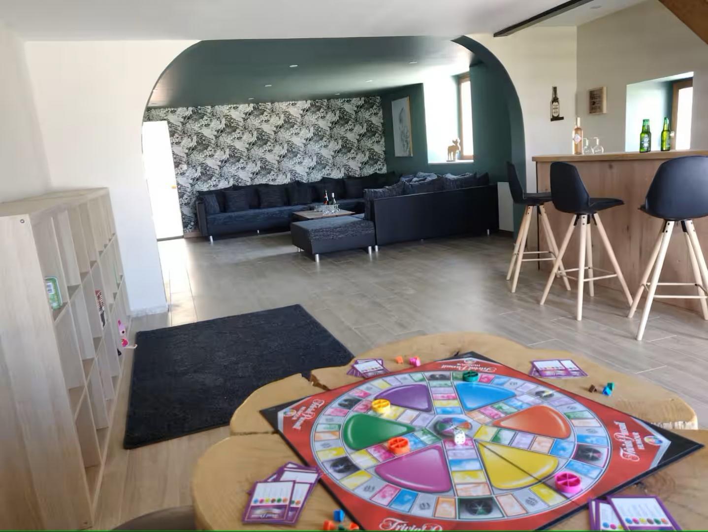 Cette spacieuse maison de vacances entièrement rénovée sera le lieu idéal pour vous retrouver en famille ou entre amis! Elle se compose au RDC d'un vestiaire, d'un salon de 60m² avec TV et grand canapé panoramique, d'un coin jeu avec plus de 50 jeux de société, 40 DVD films, 40 DVD dessins animés, divers jouets et livres, d'une cuisine toute équipée, d'une salle de bain avec baignoire, d'un WC indépendant et d'une buanderie. A l'étage, 1 WC indépendant et 4 chambres : -1 dortoir avec 6 lits superposés -1 chambre double avec 1 lit 140*190 et sa salle d'eau privative (douche) -2 chambres avec chacune 1 lit double 160*200 et chacune avec sa salle d'eau privative (douche) Côté extérieur vous trouverez : terrain clos avec terrasse et bar barbecue à charbon, balançoire, terrain de pétanque, salon de jardin, table et chaises extérieur Un parking privé pour plusieurs voitures se situe devant la maison. Matériel pour bébé gratuit sur demande ( 2 lits parapluie, 2 chaises hautes, table à langer, transat up and down, pot, anneau de bain, baignoire + transat de bain, stérilisateur, poussette canne, jouets 1er âge) Idéalement situé, à 10 min en voiture de Clairvaux les lacs où vous trouverez tous les commerces et commodités : 3 supermarchés, boulangeries, boucherie, fromageries, pharmacie, poste, boutiques de souvenirs, restaurants, cabinet médical...ainsi que le lac de Clairvaux avec plage aménagée et surveillée en été. Activités printemps/été/automne : Grottes, cascades, belvédères, lacs de baignade, randonnées, canoë/kayak, accrobranche, canyoning, route des vins, fruitière à Comté, cave d affinage, pêche... Lac de Clairvaux 7 km, lac de Bonlieu 7 km, lac d Etival 13 km, lac de Chalain 14 km, lac de Vouglans entre 15 et 30km ( plusieurs plages aménagées) Activités hiver : Ski de fond, Morbier à 20 min et Prenovel à 30 min, ski alpin:Morbier à 20 min ( débutants), Bellefontaine à 30 min ( débutants), Les rousses 50 min ( tous niveaux)