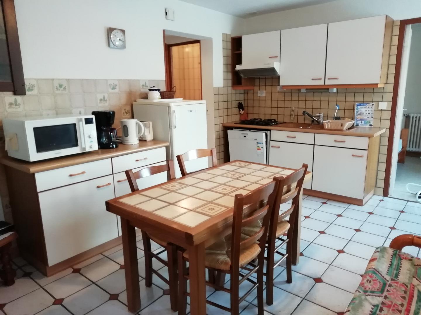 Logement au 1er étage. Cuisine-séjour avec réfrigirateur-compartiment congélateur, salle d'eau, wc indépendants, ch1: 1 lit 2 pl (140*190), ch2: 2 lits simples, salon de jardin, barbecue, terrain attenant non clos. Chauffage central. Toutes charges comprises. Gite non fumeur.