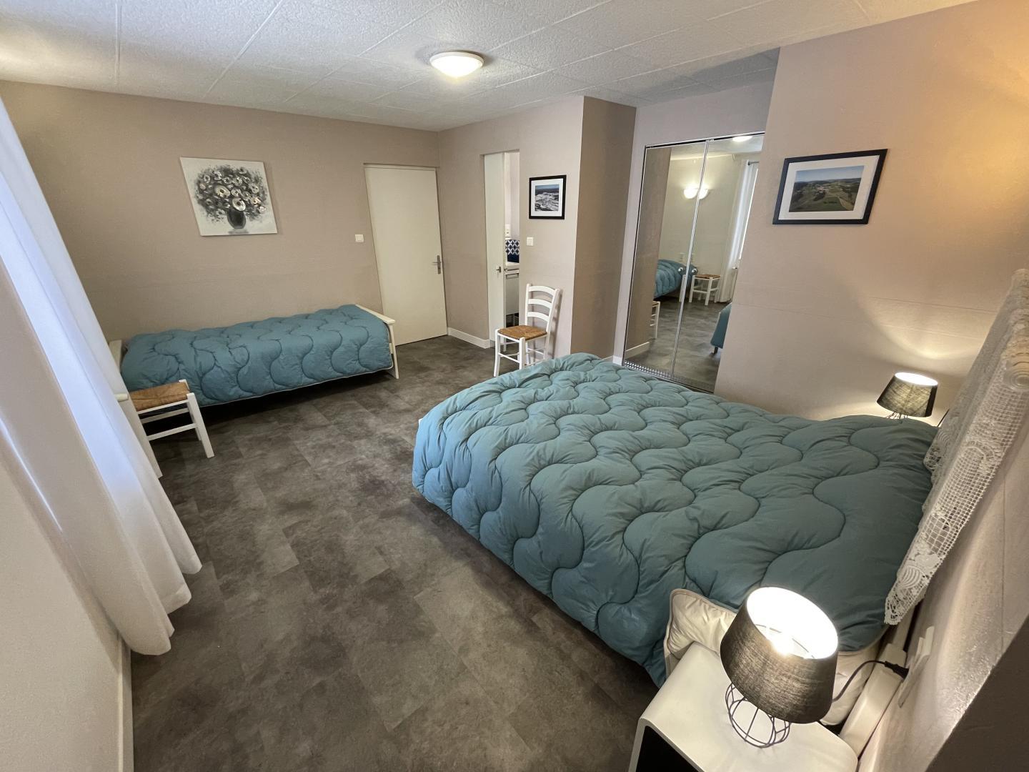 Logement indépendant au RDC de la maison des propriétaires avec sa propre entrée et un hall d'entrée. Cuisine- séjour, ch1: 1 lit 2 pl, 1 lit 1 pl avec cabinet de toilette (wc et lavabo), ch2: 1 lit 2 pl (chambres en enfilade). Salle d'eau et wc. Terrain attenant non clos, cour, salon de jardin. Chauffage central. Accès wifi. Toutes charges comprises.