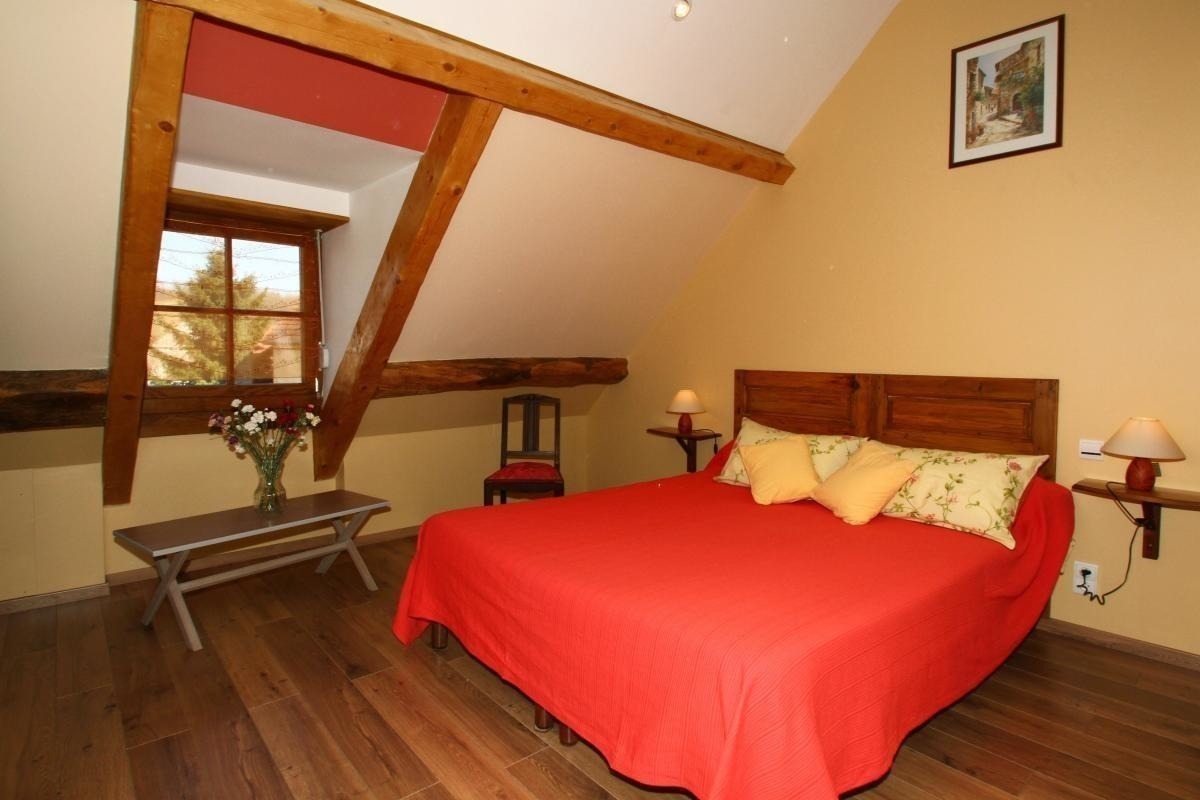 Au cœur du Revermont, au centre de ce joli village fleuri, 2 chambres (de 2 ou 3 pers) avec sanitaires privés sont aménagées à l'étage de la maison des propriétaires. Spacieuses, décorées et aménagées avec beaucoup de goût, l'une dispose d'une mezzanine et d'une grande literie (160x200) et l'autre d'une petite annexe. Vous pourrez profiter à votre guise du parc arboré et aménagé des propriétaires. Selon la saison le petit déjeuner pourra être servi en plein air. Table d'hôte sur réservation. Chambres équipées d'un système de climatisation. Table d’hôtes : un apéritif, une entrée, un plat, fromage, dessert et café - Dîner/pers : à partir de 25€ boissons comprises.