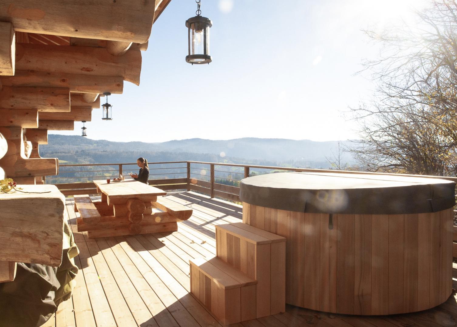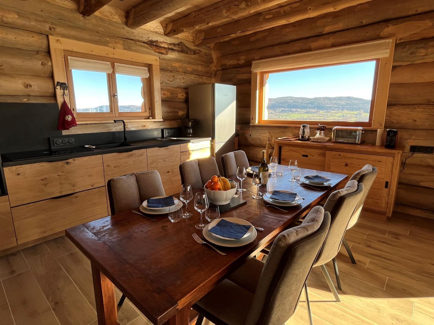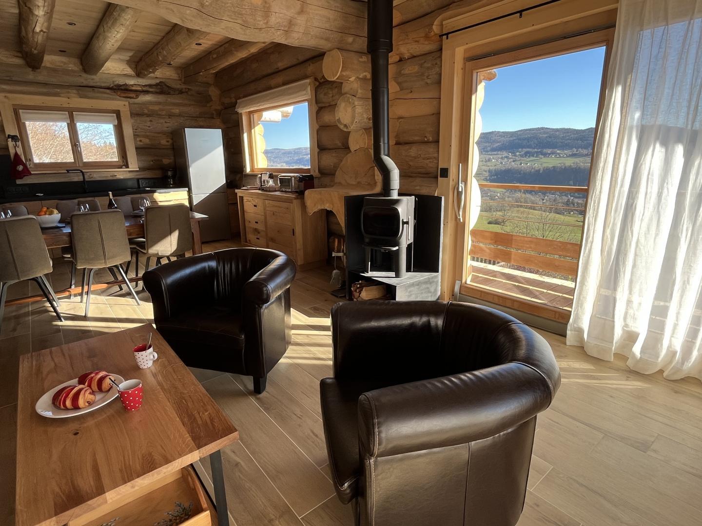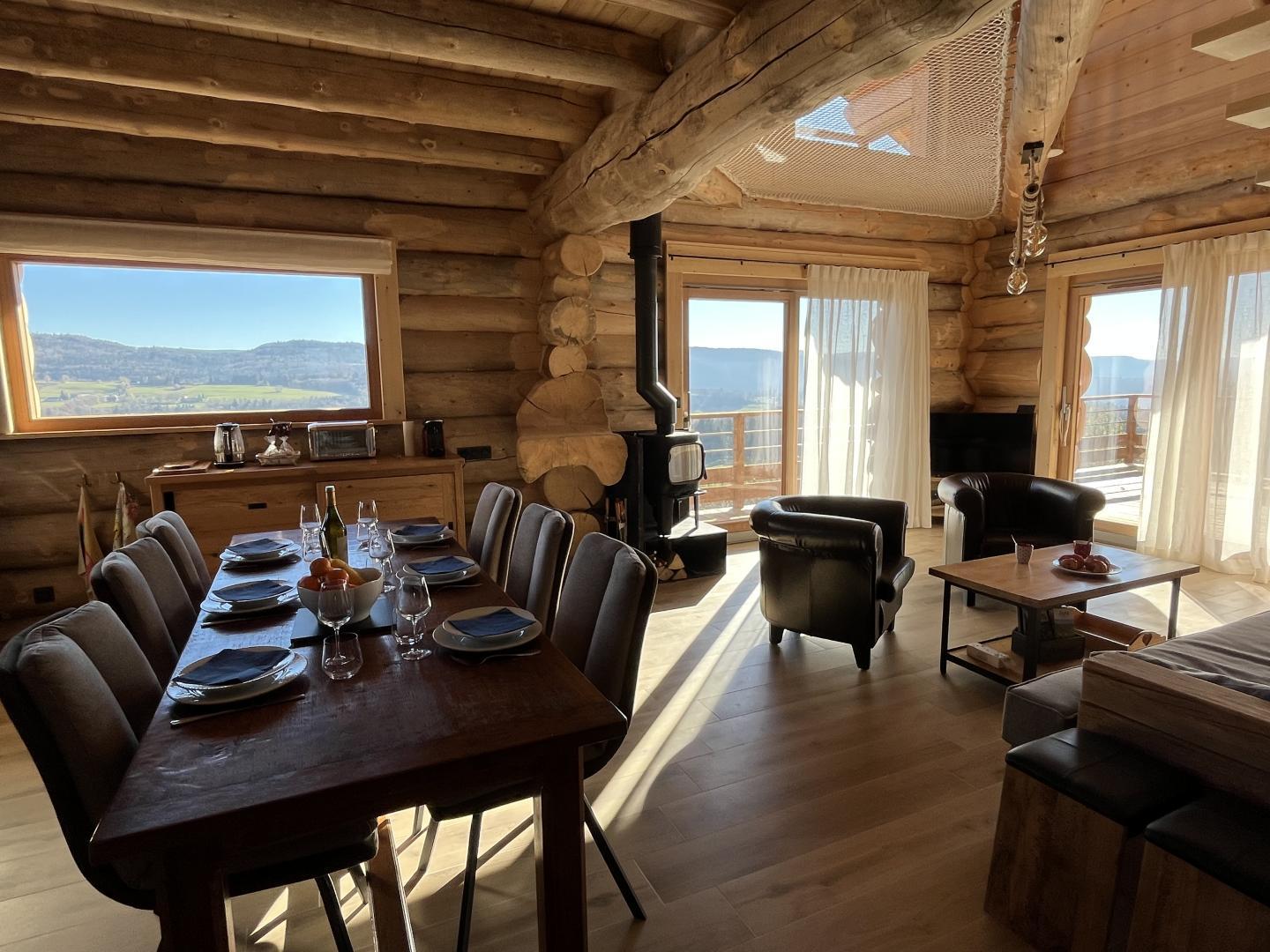 Dans cet environnement apaisant et préservé, le temps semble s'arrêter pour apprécier la sérénité et la magie du bois de ce chalet indépendant en fustes. Vous serez séduit par la vue imprenable à 180° et par l'atmosphère douillette de ce chalet labellisé écogîte : les propriétaires sont sensibles à l'environnement et aux circuits courts. Les bois du chalet proviennent des forêts du haut Jura. L'isolation des cloisons intérieurs est en laine recyclée et chanvre. Nous avons une cuve de récupération d'eau du toit pour l'alimentation des toilettes Au 1er : grande pièce de vie avec cuisine toute équipée, salon avec TV et poêle à bois, suite parentale avec un lit 160x200 et salle d'eau privative, WC indépendant, cellier. Au second étage : 1 chambre avec balcon (160x200), 1 chambre avec 2 lits de 90x200 (jumelables sur demande en 180x200) et un lit d'appoint (90x190-une personne supplémentaire acceptée sur demande auprès des propriétaires), 1 salle de bain avec douche et baignoire et 1 WC indépendant. Pour votre plus grand confort les lits seront faits à votre arrivée, les serviettes et peignoirs de bain sont fournis. Une grande terrasse avec salon de jardin, plancha et chaises longues vous permettra de profiter de la quiétude des lieux tout en admirant la nature environnante. Un spa fonctionnant toute l'année vous apportera bien être et détente après les activités de plein air. Un garage avec porte électrique (hauteur maxi 2 m) pour 1 véhicule. Idéalement situé à 2 kms du centre du village où vous trouverez tous les commerces (restaurant, supermarché, fromagerie, bureau de tabac, location de vélos...). Les sentiers VTT, ski de fond et raquettes partent depuis le gîte et un fil neige pour l'apprentissage du ski de descente se trouve à 2 kms. Le parc polaire de Chaux Neuve, les gorges de la Saine et de la Langouette se trouvent à une dizaine de minutes.