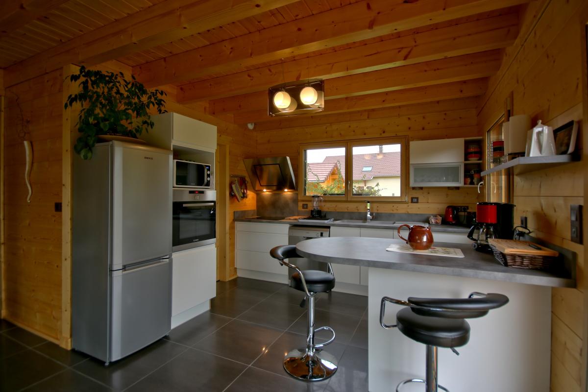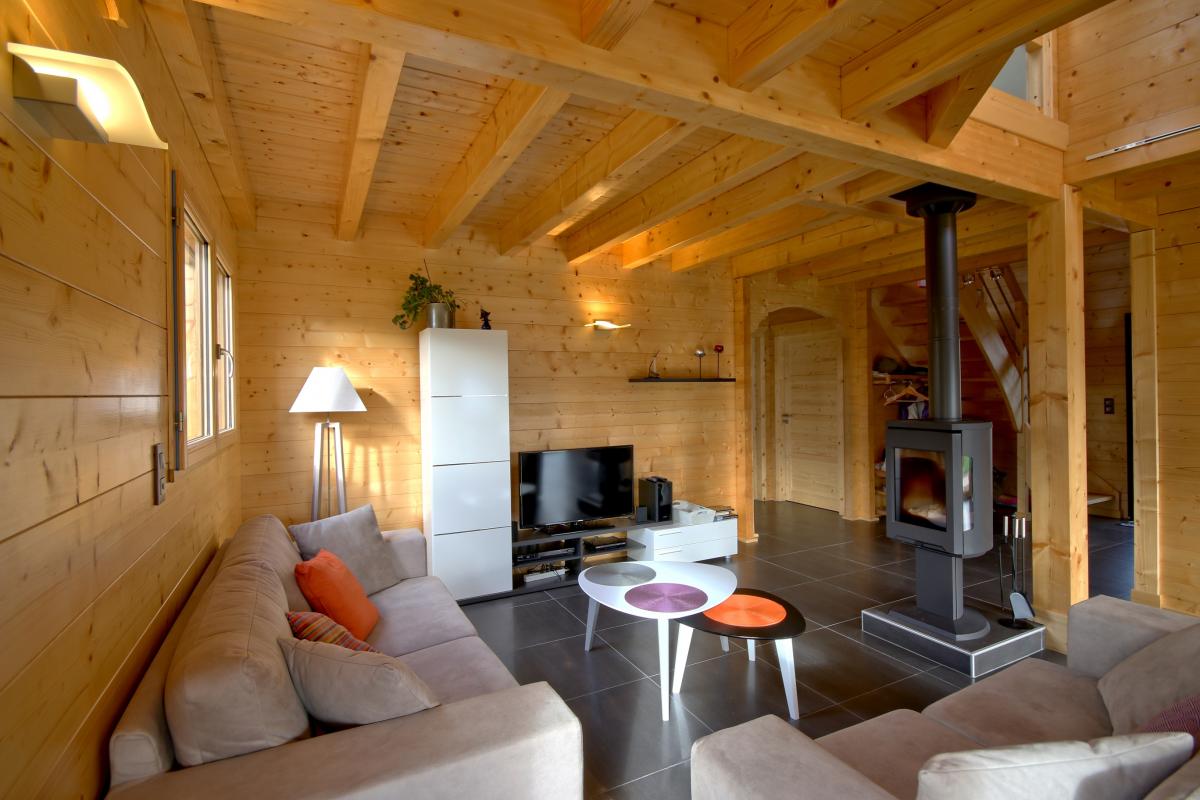 venez profiter de ce grand chalet bois situé en plein coeur du Jura à proximité de nombreux lacs et sentiers de randonnées. Ce chalet a été entièrement construit avec des matériaux sains et de provenance locale. Hall d'entrée, grande pièce à vivre lumineuse avec salon accueillant et chaleureux (poêle à bois, Tv avec home cinéma), salle à manger et cuisine. Une 1ère chambre : 1 lit 2 pl (160X200cm), salle d'eau avec wc. A l'étage : mezzanine, Ch2 : 1 lit 2 pl (160X200cm), Ch3 : 2 lits 1 pl, salle d'eau avec une grande cabine de douche et jets hydromassants, wc indépendant. Terrain non clos avec table et salon de jardin, plancha. Local à motos, vélos, ski,... Tout le RDC du gîte est accessible aux personnes à mobilité réduite. Lits faits à l'arrivée. Linge de toilette compris dans le forfait ménage. Bois fourni gratuitement. Les propriétaires ont su valoriser leur hébergement (classement BBC) avec une démarche environnementale par le biais de la thématique "Ecogeste". Le forfait ménage varie de 50€ à 90€ en fonction du nombre de personne et de pièces utilisées, il doit être réservé directement auprès des propriétaires. Note : à certaines périodes le chalet peut être réservé de 4 à 7 jours.