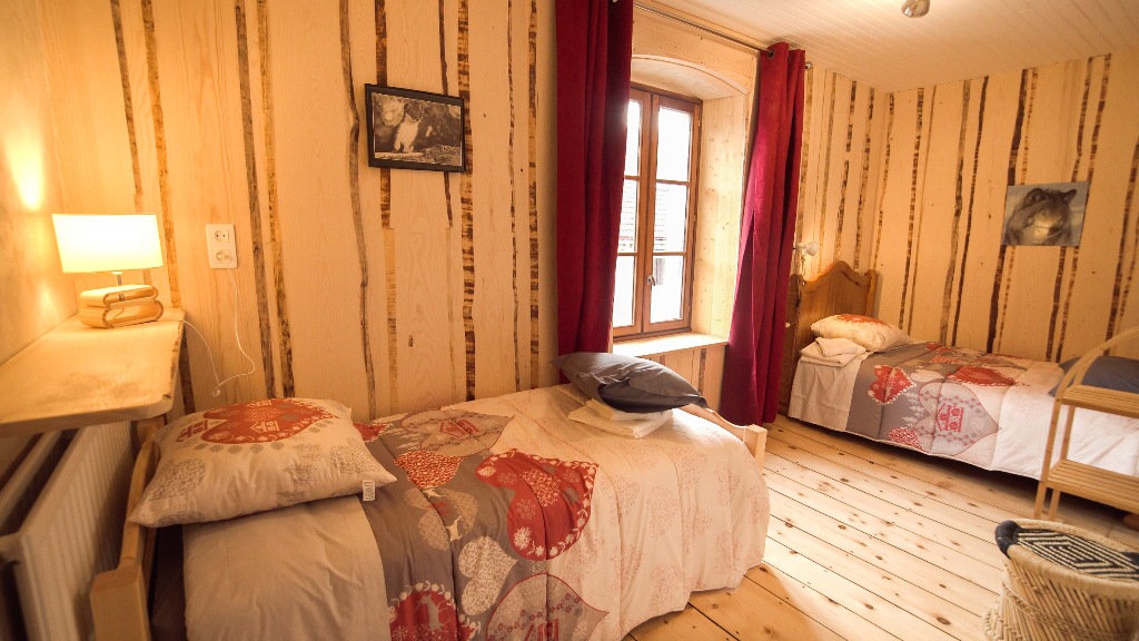 Aménagé dans une ancienne auberge, ce gîte (mitoyen) au propriétaire, situé au cœur du village de La Pesse, vous fera découvrir l'esprit de l'habitat Haut-Jurassien conjuguant, bois et pierre calcaire de construction. Au rez-de-chaussée, le hall d'entrée et le couloir vous conduiront à la cuisine entièrement équipée, où vous découvrirez par une trappe vitrée la cave souterraine de l'auberge. La salle à manger, superbe pièce lumineuse de 35 m² avec un espace salon avec écran plat et un bar jurassien. Une pièce détente et salle de jeux avec écran TV qui donne accès à une véranda aménagé coin presse et magazines avec accès sur terrasse et jardin privatif de 3000 m² de la maison. Par l'escalier central d'époque, vous accédez à l'étage pour découvrir 4 chambres uniques spacieuses et lumineuses et aménagées avec des essences de bois jurassiennes différentes. 1 suite parentale avec lit double 160 cm et offrant une salle de bain totalement équipée avec baignoire, et WC 1 chambre avec lit double 160 cm avec espace bureau pour le travail ou la lecture. 1 chambre équipée avec un lit 130 cm et un lit 90 cm. 1 dernière chambre avec un lit 90 cm. Au niveau sanitaire : Au RDC, un WC indépendant et une salle de bain avec vasque et grande douche à l'italienne A l'étage : une salle de bain avec vasque, baignoire et WC Un espace sauna et détente pour 4 personnes vous permettra de vous détendre après une ballade en raquette ou une randonnée. Côté extérieur, la maison bénéficie d'un parc privé entièrement fermé de 3000 m² avec terrasse aménagée et salon de jardin, jardins fleurs et potagers à disposition (L’aménagement d’un espace jeu enfant et d’un terrain de boules sont prévus pour 2023) Vous disposez également d'un garage fermé pour votre véhicule et d'une place de parking privé extérieure. Pour votre plus grand confort, les lits seront faits à votre arrivée et les serviettes de toilettes fournies. Forfait ménage obligatoire : 100€