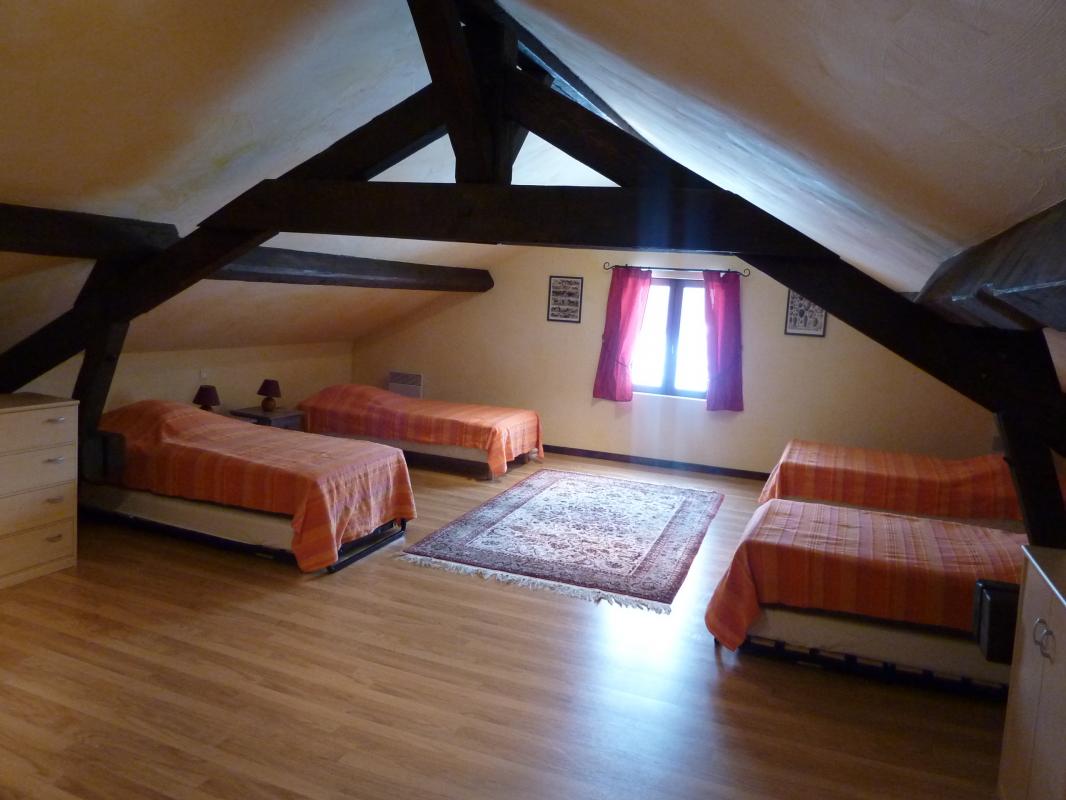Maison indépendante située dans l'enceinte d'une petite ferme (ânes, canards, poules). Séjour-salon, canapé convertible, coin-cuisine, micro-ondes, congélateur, lecteur DVD/CD, salle d'eau, WC indépendant, ch1: 1 lit 2 pl, à l'étage: ch2: 4 lits 1 pl, dont 2 gigognes, équipement pour bébé. Chauffage électrique et poêle à bois, cour, salon de jardin, barbecue, terrain privatif clos. Piscine et terrasse, commune avec les propriétaires et un autre gîte (piscine du propriétaire mise à disposition), terrain de pétanque, pingpong. Pour votre plus grand confort ce gîte est proposé en tout inclus : lits faits à l'arrivée, linge de toilette et linge de maison fournis, ménage inclus. (Possibilité d'accueillir 2 pers supplémentaires dans le canapé:10€/jour/pers). Borne de recharge électrique : forfait entre 5 et 10 euros par jour.