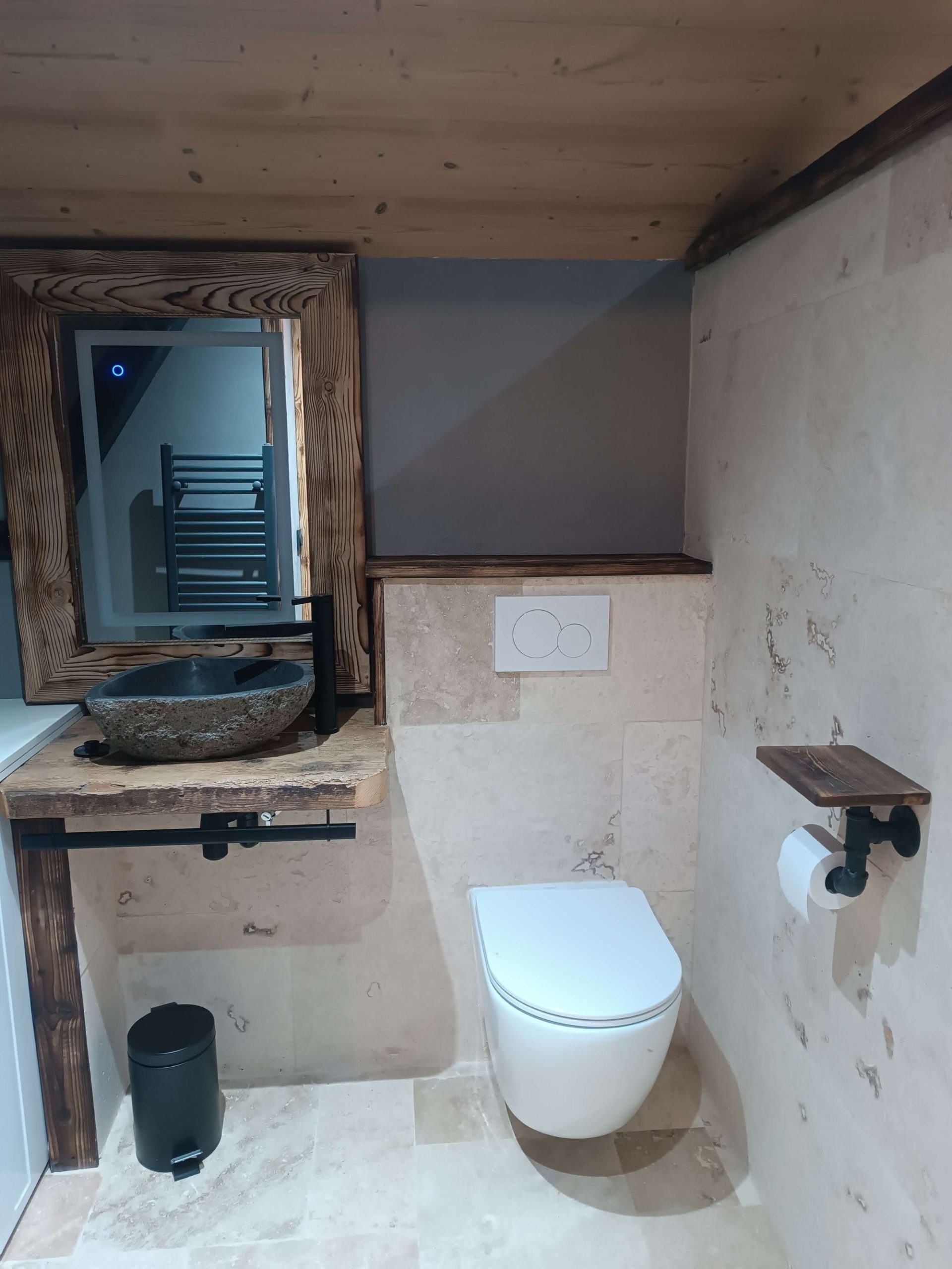 Poutre, bois, pierres sont un atout pour ce gîte.