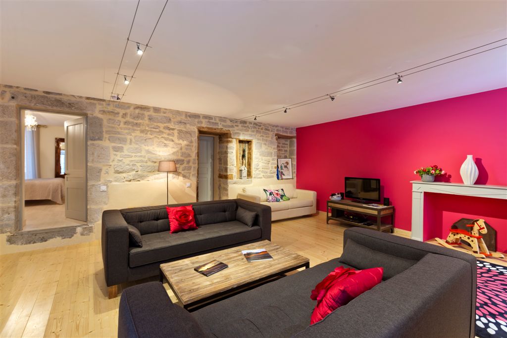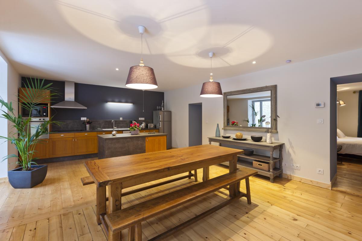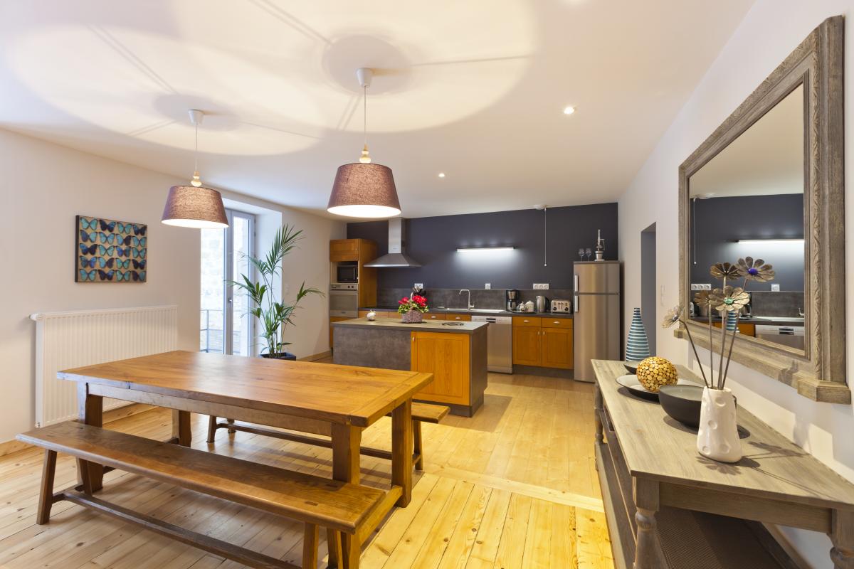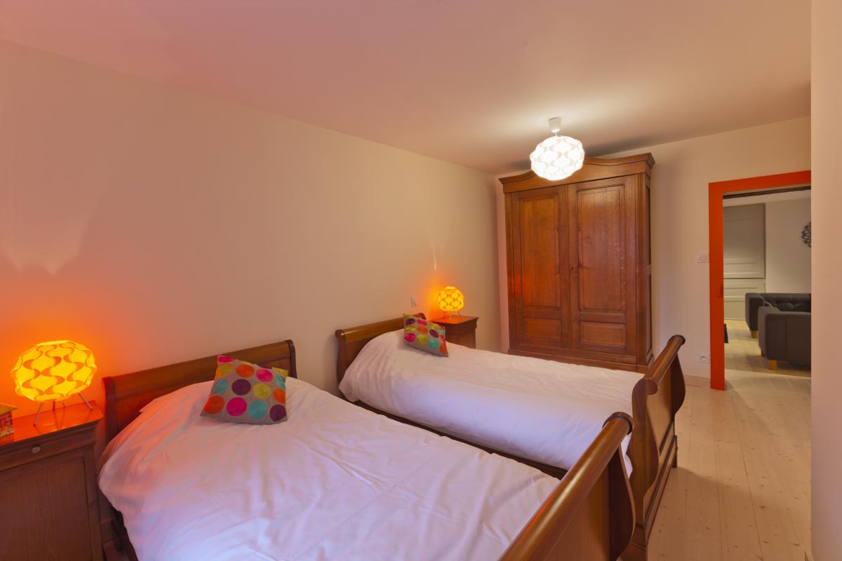En plein coeur de la ville de Poligny, Capitale du Comté, maison mitoyenne entièrement rénovée avec goût et raffinement. Maison de plain pied (quelques marches pour accéder au gîte) composée d'une vaste cuisine ouverte sur la salle à manger, cellier, salon indépendant avec TV et lecteur dvd, Ch1 : 1lit 2pl(160x200), Ch2 : 2lits 1pl(90x200) toutes 2 disposent d'une salle d'eau commune avec douche et WC, Ch3 : 1lit 2pl(160x200), Ch4 : 2lits 1pl(90x190), les 2 chbres disposent aussi d'une salle de bain commune avec baignoire et WC. Cour intérieure avec jardin, terrasse, salon de jardin et barbecue. Lits faits à l'arrivée.