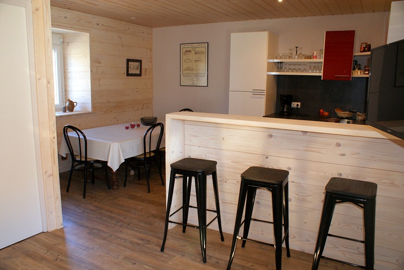 Logement rénové à l'étage d'une maison. Hall d'entrée, cuisine ouverte sur espace repas et coin salon (poêle à bois), deux salles d'eau avec WC. Les chambres se situent à l'opposé pour un meilleur confort : chambre 1 : 2 lits 2 places superposés (possibilité de 2 couchages supplémentaires), chambre 2 et chambre 3 avec chacune 1 lit 2 places. Le gite dispose d'un terrain clos, d'une terrasse de 19m² avec un salon de jardin, barbecue grill plancha et parasol. Box internet par fibre. Possibilité de location de draps 1 personne et 2 personnes avec taie oreiller, linges de toilette et draps de bain. Prise renforcée GreenUp voiture électrique.