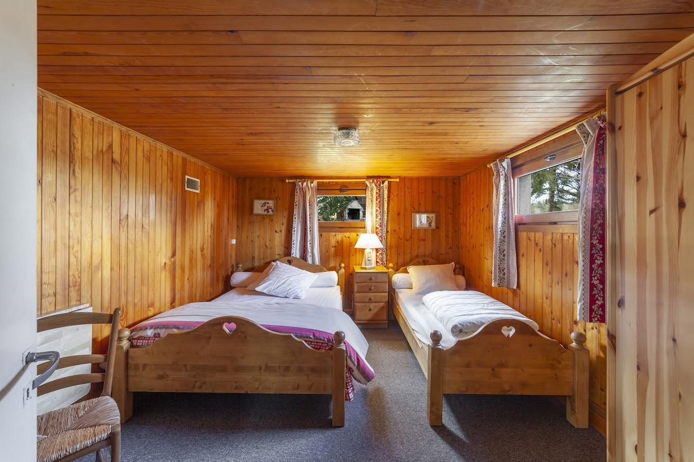 Chalet indépendant. Au RDC: ch1: 1 lit 2 pl, 1 lit 1 pl. Wc indépendants. A l'étage: cuisine, séjour, salon, salle d'eau, wc indépendants, ch2: 1 lit 2 pl, ch3: 1 lit 2 pl, 1 chaise haute, TV 16/9 avec abonnement Canal Satellite, lecteur DVD, chaîne HI-FI, wifi, sèche-linge, balcon, terrain non clos de 1800m², cour, salon de jardin, barbecue, garage indépendant pour 2 voitures. Chauffage central fuel. Toutes charges comprises. Piscine au centre d'accueil Duchet à 100m.