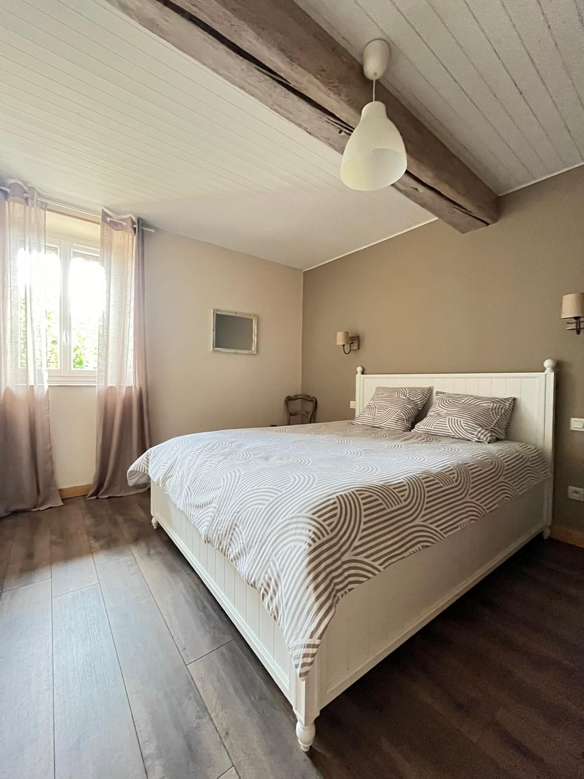 A la limite de l'Ain, du Jura et de la Saône et Loire, vous serez séduit par ce gîte de plain-pied rénové avec goût. Mitoyen à la maison des propriétaires, il se compose d'une pièce de vie avec coin salon équipé d'une TV, d'un lecteur de DVD, de 2 canapés convertibles (possibilité d'ajouter 1 ou 2 personnes supplémentaires sur demande), d'un poêle à bois, d'un espace salle à manger et d'une cuisine toute équipée, de 2 chambres : l'une avec 2 lits simples (90*190) et la seconde avec un lit double (160*200), d'une salle d'eau avec douche, d'un WC indépendant, d'une buanderie avec lave-linge. Au 1er étage et accessible uniquement par un escalier extérieur : 2 chambres, l'une avec un lit double 140*190 et la seconde avec 1 lit double 160*200, une salle d'eau avec douche et WC. Pour votre plus grand confort, les lits seront faits à votre arrivée et les serviettes sont fournies. Côté extérieur, vous pourrez profiter d'une terrasse avec salon de jardin et barbecue, d'une piscine partagée avec les propriétaires et les vacanciers de la chambre d'hôte (dimension 9 * 4 avec fond allant de 1.20 à 1.80) ainsi que d'une table de ping-pong. Idéalement situé, à proximité du centre-ville de Saint-Amour où vous trouverez restaurants, commerces et transports en communs. Proche de l'autoroute A39, A40, A42. Randonnée pédestre et VTT. Vous pourrez visiter les caves des Vignerons de Beaufort et Rotalier mais aussi Château Chalon, Baume les Messieurs (ses cascades, ses grottes et son abbaye), le château d'Arlay, le lac de Vouglans, Arbois et la très pittoresque ville de Louhans (25 mn) réputée pour son patrimoine gastronomique et architecturale. Vous pourrez déambuler dans le marché qui se déroule tous les lundis matin. Vous pourrez également visiter la ville de Lons le saunier (20 mns) et vous prélasser dans ses eaux thermales. Site idéal pour les stages de méditation, yoga, sophrologie. Note : un forfait ménage obligatoire s'appliquera automatiquement au moment de la réservation.
