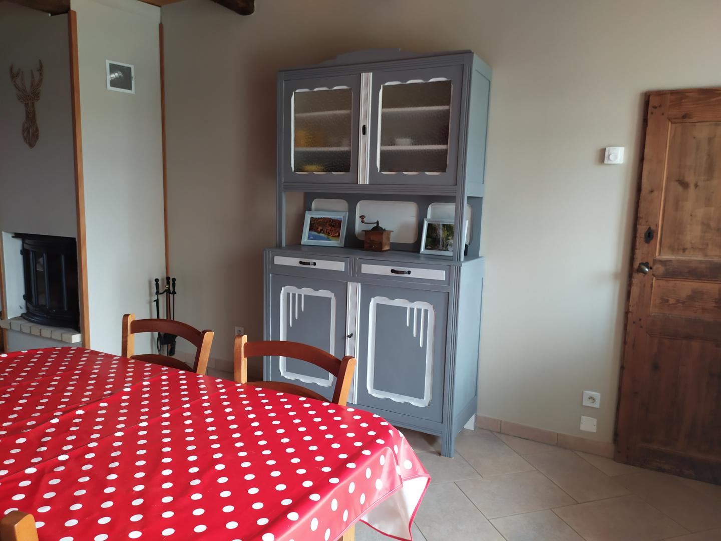 Maison mitoyenne, salon avec coin-cuisine, micro-ondes, canapé convertible, à l'étage: ch1: 2 lits 1 pl, 1 lit bébé, ch2: 1 lit 2 pl, 1 lit 1 pl, salle d'eau, chauffage électrique et bois, terrasse, jardin clos, salon de jardin, barbecue. Toutes charges comprises. Gîte situé en face de la magnifique église romane du village. Equipement bébé à disposition.