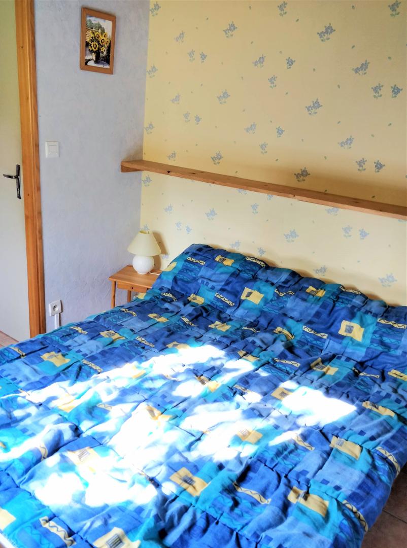 Dans un village tranquille dominant Clairvaux-les-Lacs, entre lacs et forêts, maison mitoyenne, au RDC: séjour-salon, coin-cuisine, poêle à bois, ch1: 1 lit 2 pl, ch2: 1 lit 2 pl, salle d'eau, terrain attenant clos, cour, terrasse ombragée, salon de jardin, barbecue. Chauffage électrique et bois. Toutes charges comprises. Parking privé. Aire de jeux pour enfants et terrain de pétanque à proximité.