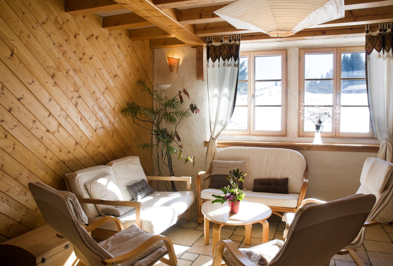 En pleine nature et à l'orée de la forêt où apparaissent de nombreux animaux (écureuils, chevreuils, différentes espèces d'oiseaux), logement situé à l'étage et mitoyen à la maison des propriétaires. Accès indépendant. Séjour-salon très lumineux (TV + radio). Cuisine intégrée toute équipée. chambre : 1 lit 2 places + 2 lits superposés, salle d'eau avec douche et sauna, WC séparés. A l'étage : une chambre avec 1 lit 2 places (160) + 1 lit de 90cm et un lit bébé. Chambre 3: 1 lit de 140x190. Lits faits à l'arrivée. Salle d'eau avec wc. Chauffage au sol (gaz et solaire). Terrasse au rez de chaussée, salon de jardin, barbecue, portique et jeux d'enfants. Gîte non fumeurs. 1 personne supplémentaire possible sur demande auprès des propriétaires. Draps, linge de toilettes et de maison fournis ainsi que les produits d'entretien. Possibilité de recharger les véhicules électriques. Rideaux occultants dans les chambres. Parking privé dans la propriété. Note : un forfait ménage obligatoire s’appliquera automatiquement au moment de la réservation.