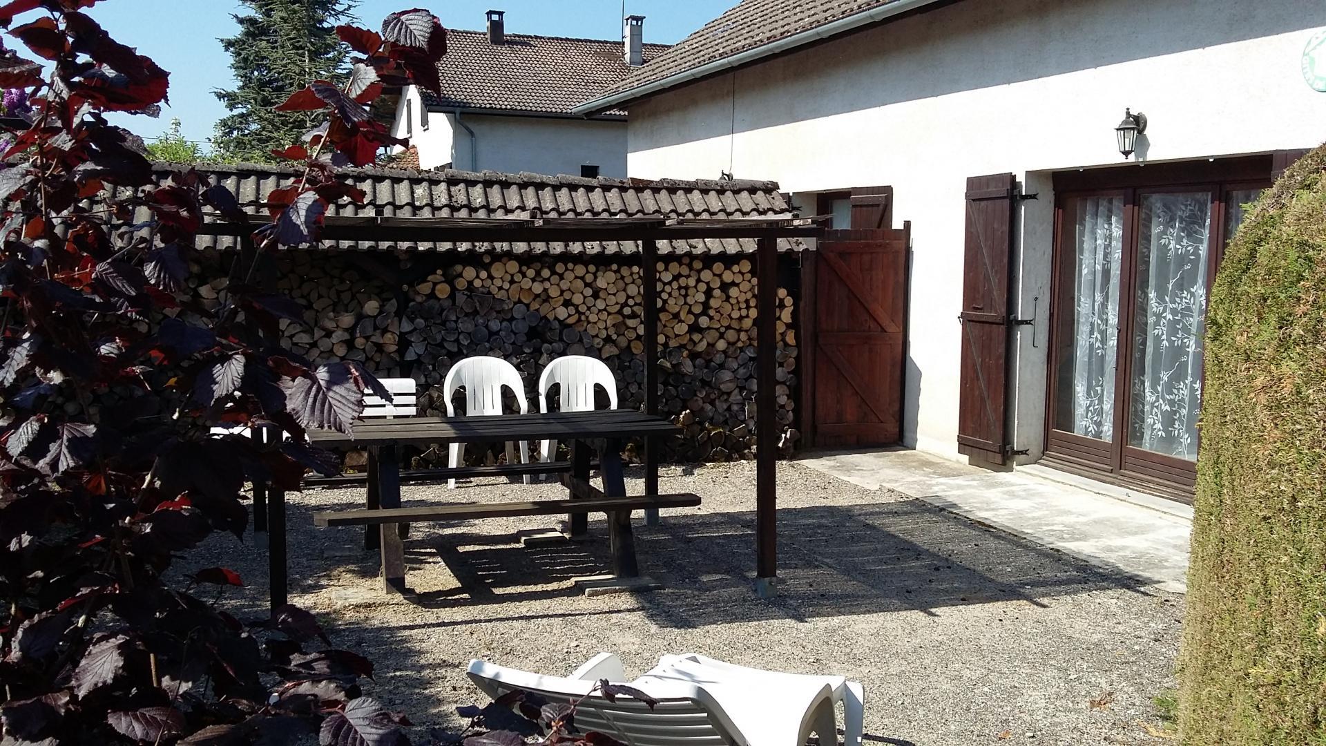 Dans un village tranquille dominant Clairvaux-les-Lacs, entre lacs et forêts, maison mitoyenne, au RDC: séjour-salon avec poêle à bois, et télévision écran plat, coin-cuisine: congélateur. A l'étage: ch1: 1 lit 2 pl, 1 lit 1 pl, ch2: 2 lits superposés, ch3: 1 lit 2 pl, salle d'eau, terrain attenant clos, cour, terrasse ombragée, salon de jardin, barbecue. Chauffage électrique et bois. Parking privé. Aire de jeux pour enfants et terrain de pétanque à proximité. Toutes charges comprises.