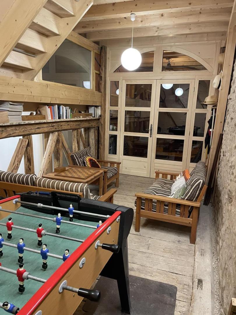 A l'orée de la forêt et au milieu des prés, dans une ferme typique du Haut-Jura datant de 1777, au calme, maison mitoyenne à un logement occupé occasionnellement par la propriétaire , entièrement rénovée et décorée avec soin. Au rez de chaussée, grande cuisine indépendante équipée, vaste séjour-salon avec TV, cheminée, salle d'eau, WC séparés, buanderie équipée: lave linge et sèche linge. A L'étage: une chambre avec 1 lit 2 pl, une chambre avec 2 lits 1 pl, une chambre avec 1 lit 2 places, WC, terrasse. Terrain attenant non clos, salon de jardin, barbecue. Parking extérieur privé. Bois pour cheminée fourni gratuitement, ainsi que draps et linges de toilette. Gite non fumeurs.