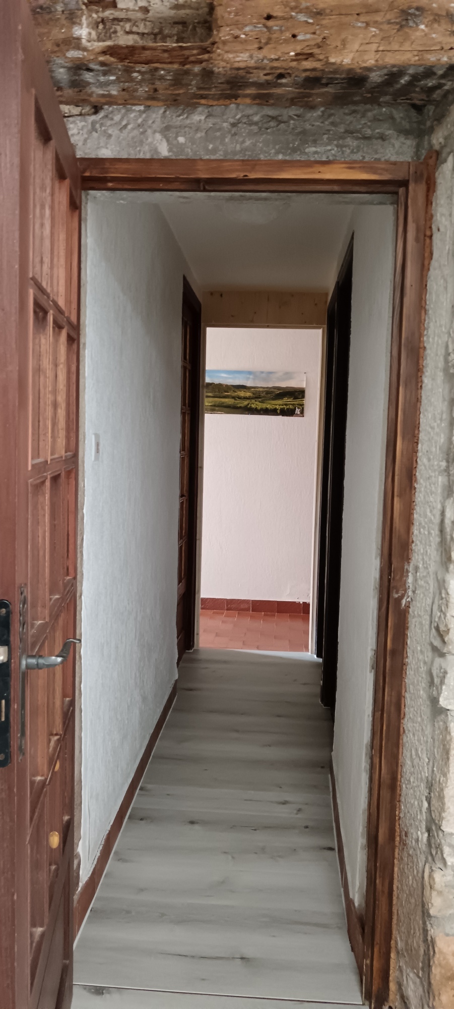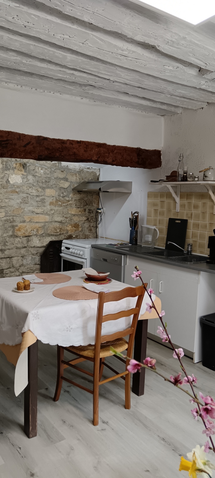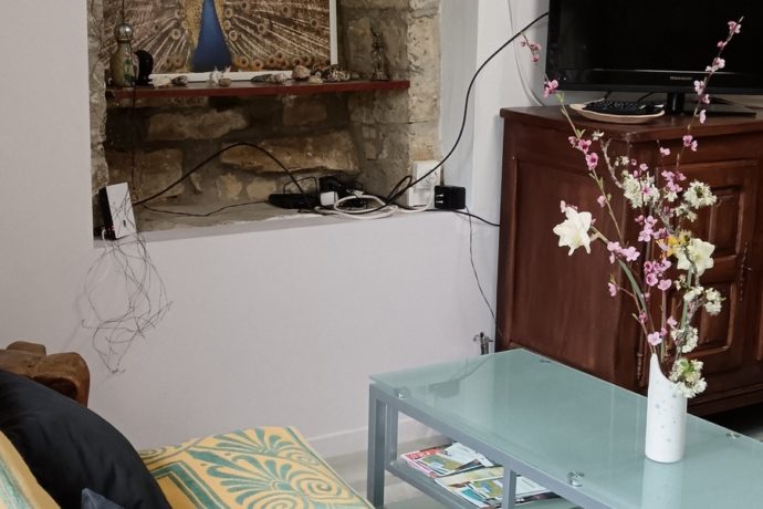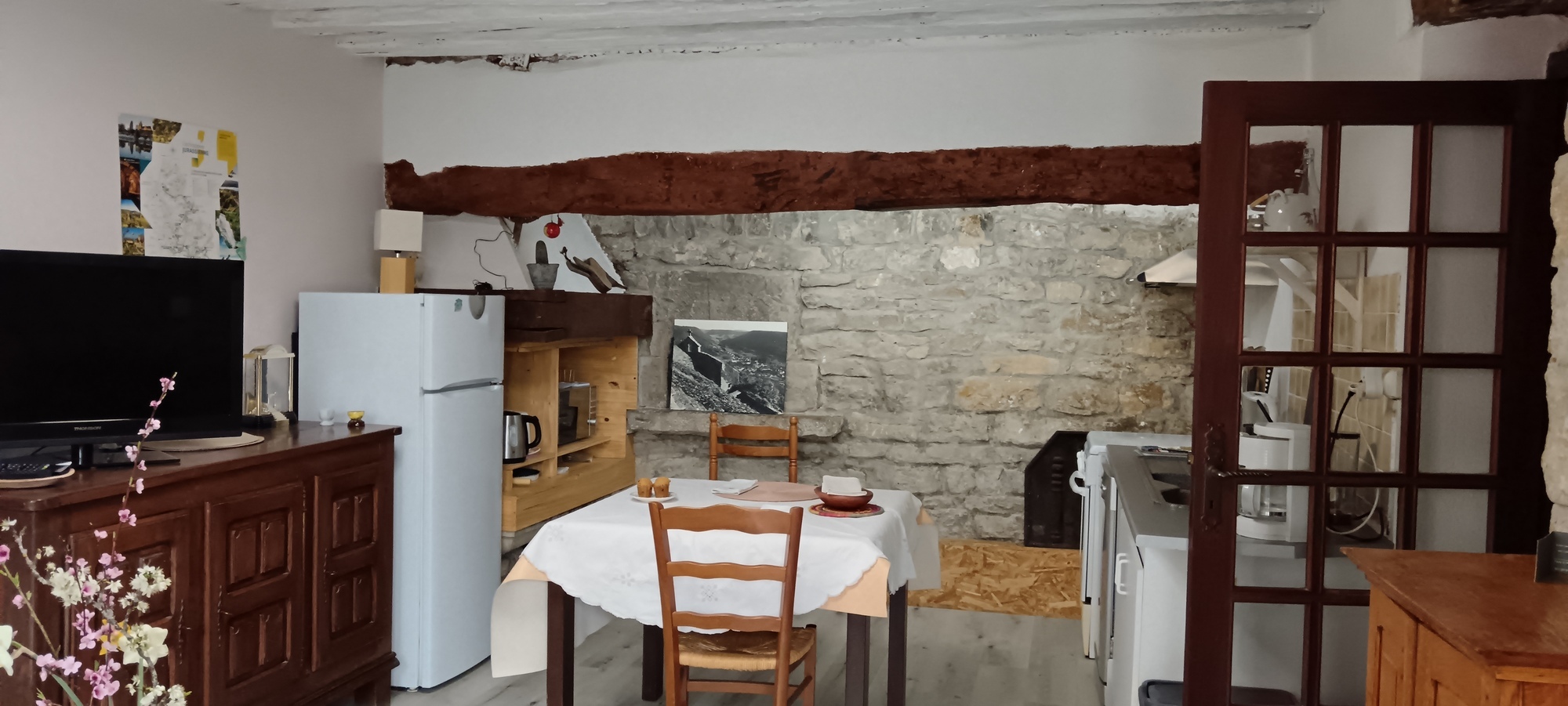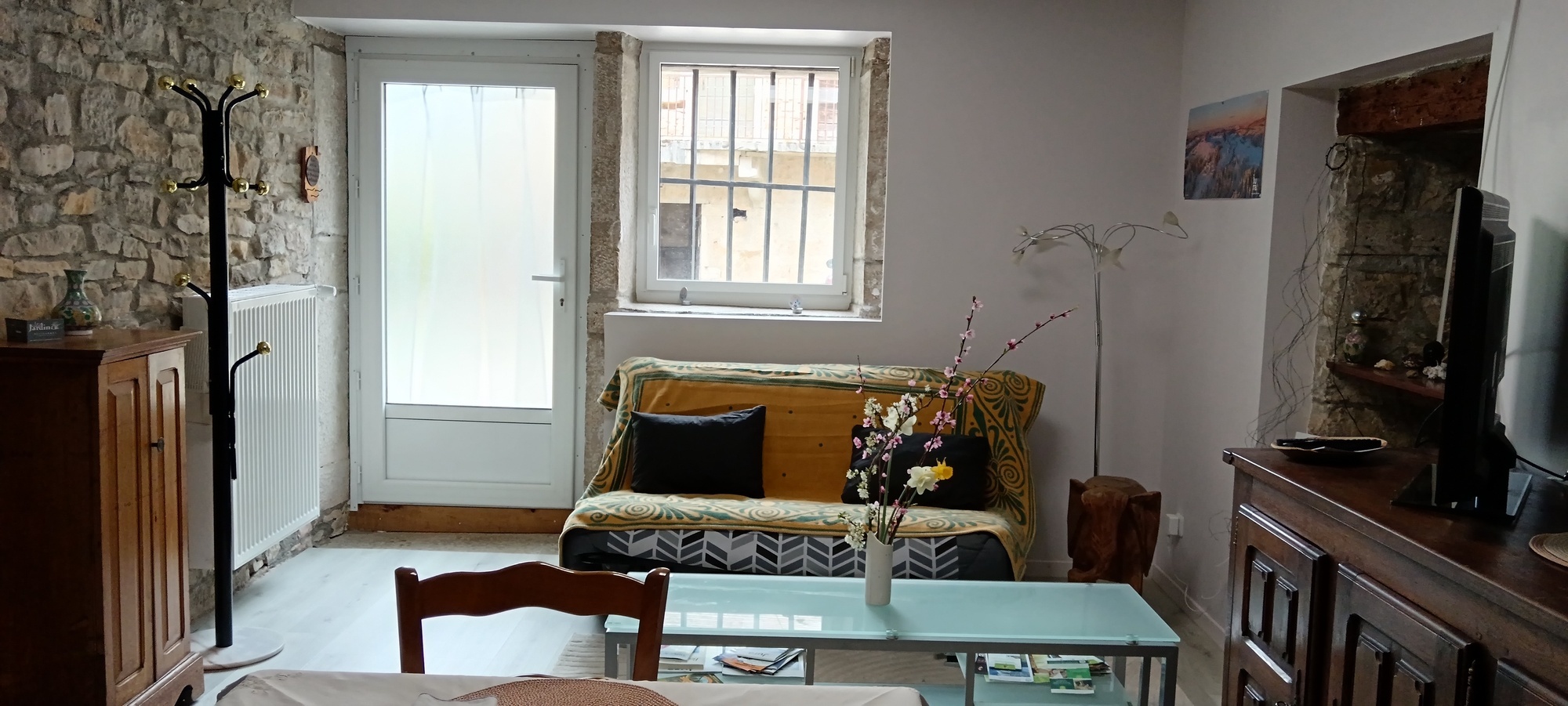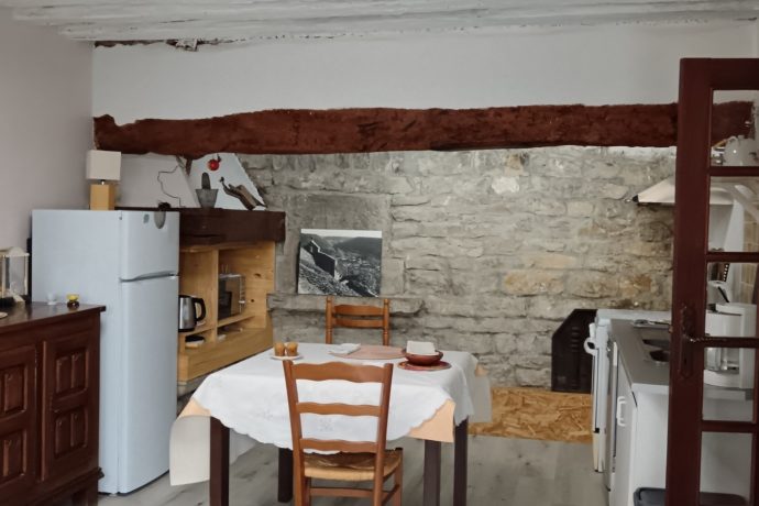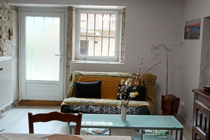 Petit appartement donnant sur une cour intérieure au rez-de-chaussée d'une ancienne maison vigneronne, dans village tranquille proche de Lons-le-Saunier.
