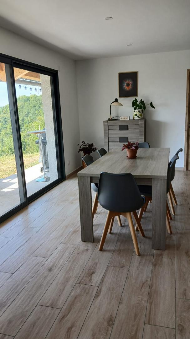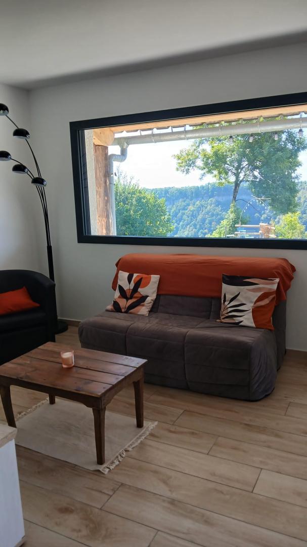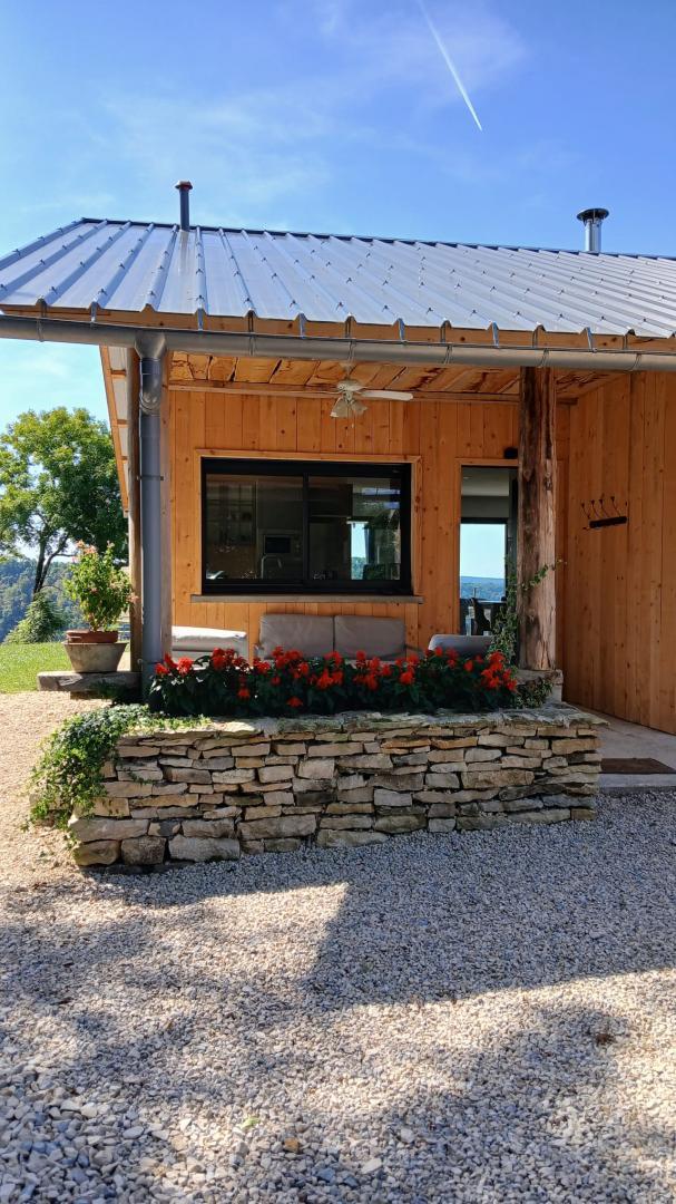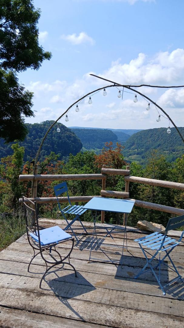 Envie de calme et de profiter d'une vue à couper le souffle? Alors ce chalet sera le lieu idéal pour vos prochaines vacances. De plain-pied, il se compose d'une pièce de vie lumineuse avec cuisine équipée, coin salle à manger et espace salon avec TV et canapé convertible (possibilité d'accueillir 1 ou 2 personnes supplémentaires sur demande et en supplément), de 2 chambres avec chacune 1 lit double (l'une avec 1 lit 140*190 et l'autre avec un lit 160*200), d'un WC indépendant et d'une salle d'eau avec douche à l'italienne. Côté extérieur, vous pourrez admirer la vue époustouflante sur le site des reculées de Ladoye à travers les différents espaces extérieurs aménagés par le propriétaire : une terrasse principale avec salon de jardin et barbecue, une petite terrasse pour être au plus près des reculées et une terrasse abritée à l'entrée du gîte. Une remise non fermée vous permettra de stationner voitures, motos et vélos. Climatisation dans la pièce de vie. Idéalement situé, à proximité des plus beaux villages de France de Baume-les-Messieurs et Château-Chalon, à une vingtaine de minutes du lac de Chalain, vous pourrez également profiter de nombreux sentiers de randonnées au départ du village.