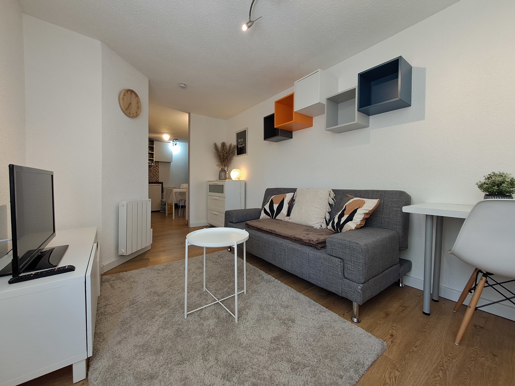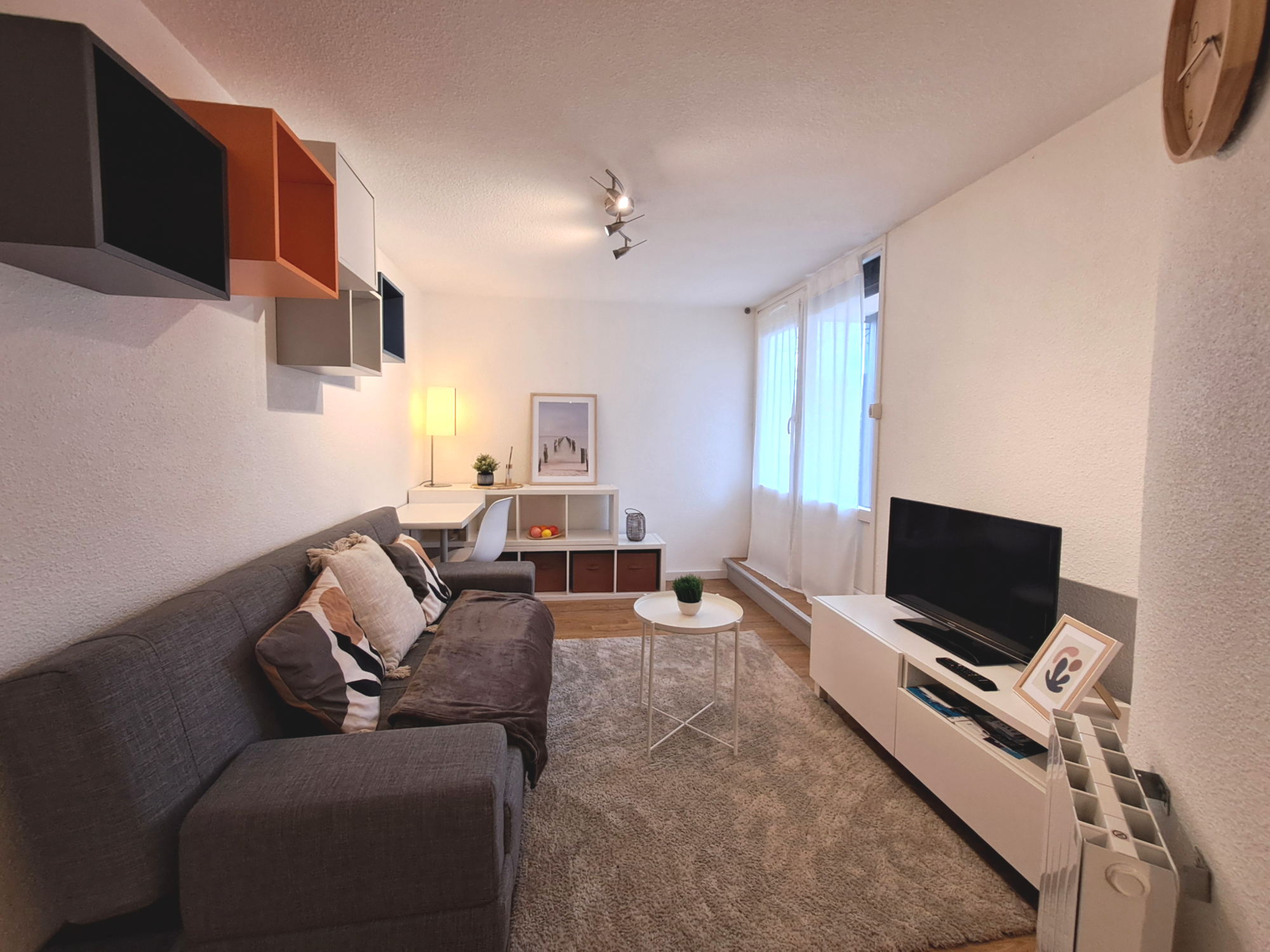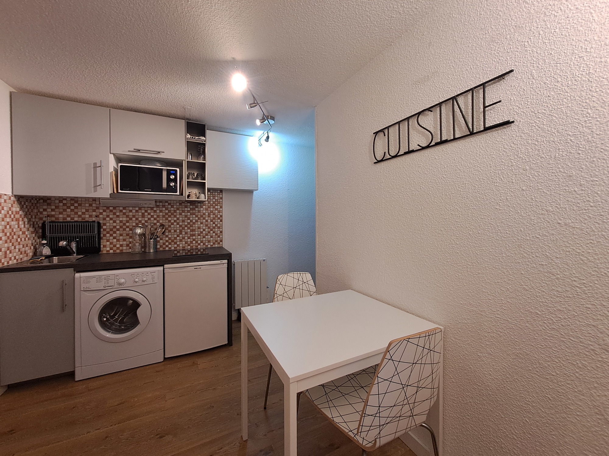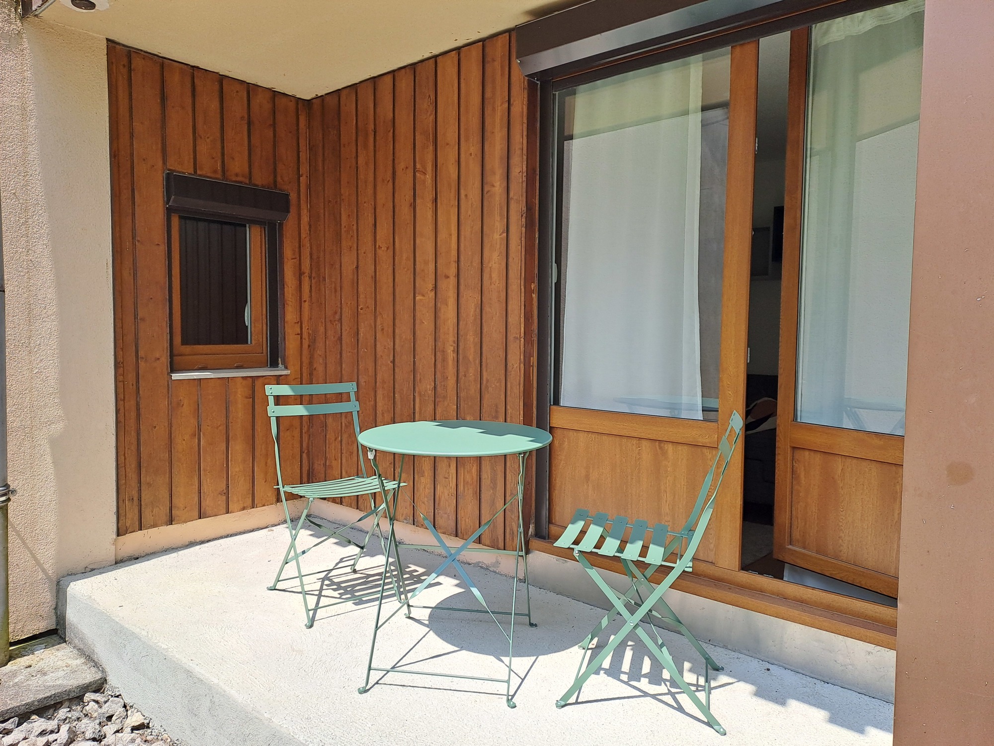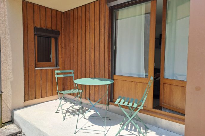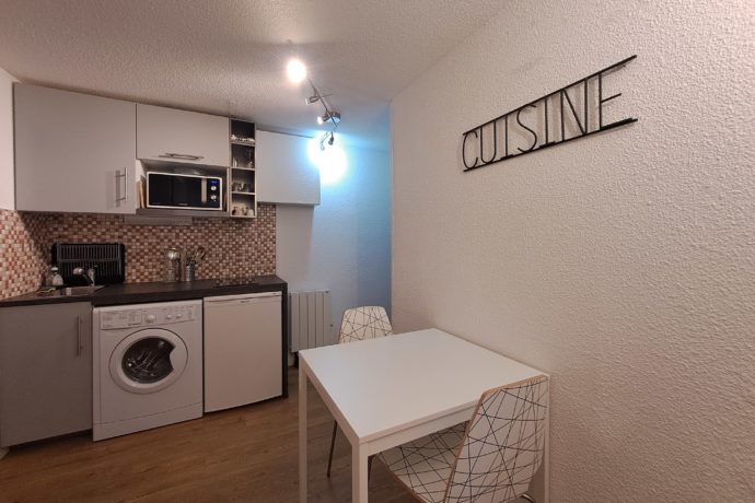 Situé dans la résidence "L’Orée Des Pistes", cet appartement de 27m² , au rez-de-chaussée, est composé d'une entrée, d'un coin cuisine et repas, d'un coin salon avec canapé convertible en 110cm et d'un coin nuit fermé avec un lit en 140cm. Salle de bain et WC séparé. Une petite terrasse.