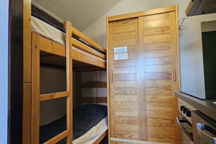 Situé dans la résidence "L’Orée Des Pistes", le studio de 30m² au deuxième étage est composé d'une entrée avec lits superposés de 90cm et d’une pièce principale avec coin cuisine/repas et canapé lit BZ. Un coin nuit séparé par un rideau avec un lit de 140cm. Salle de bain et WC indépendant. Un accès extérieur sur petit balcon complète le tout. Place de stationnement privé en parking souterrain.