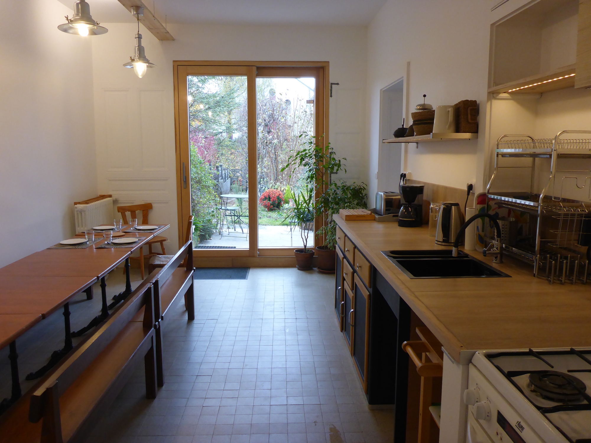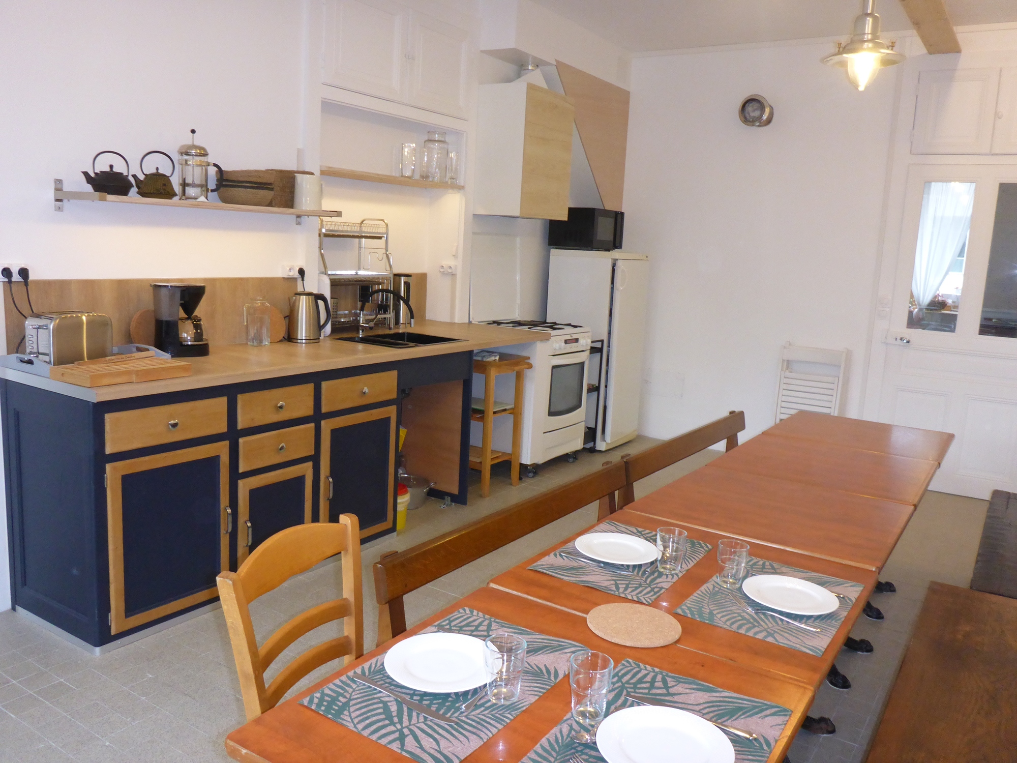 • Au rez-de-jardin, une cuisine-salle à manger tout équipée est mise à votre disposition. Nous ne proposons pas de repas. Dans le village se trouvent 1 restaurant, 1 pizzeria, 1 traiteur et tous les commerces alimentaires.