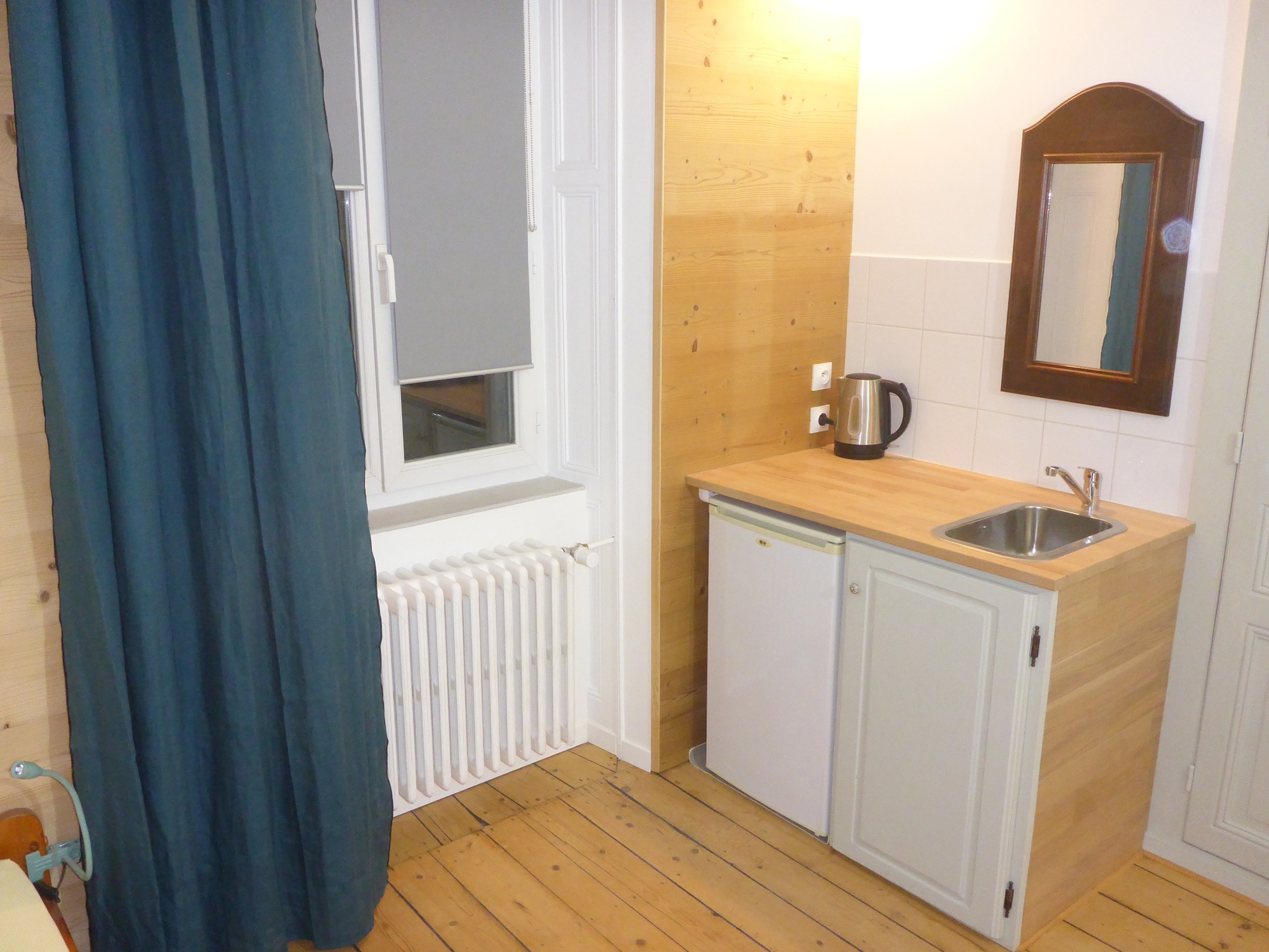 • 1 chambre d'hôtes pour 2 à 4 personnes avec un lit de 160 et 2 lits en gigogne de 80, sanitaires et WC séparés privatifs. Literie complète, serviettes de bain, une bouilloire.