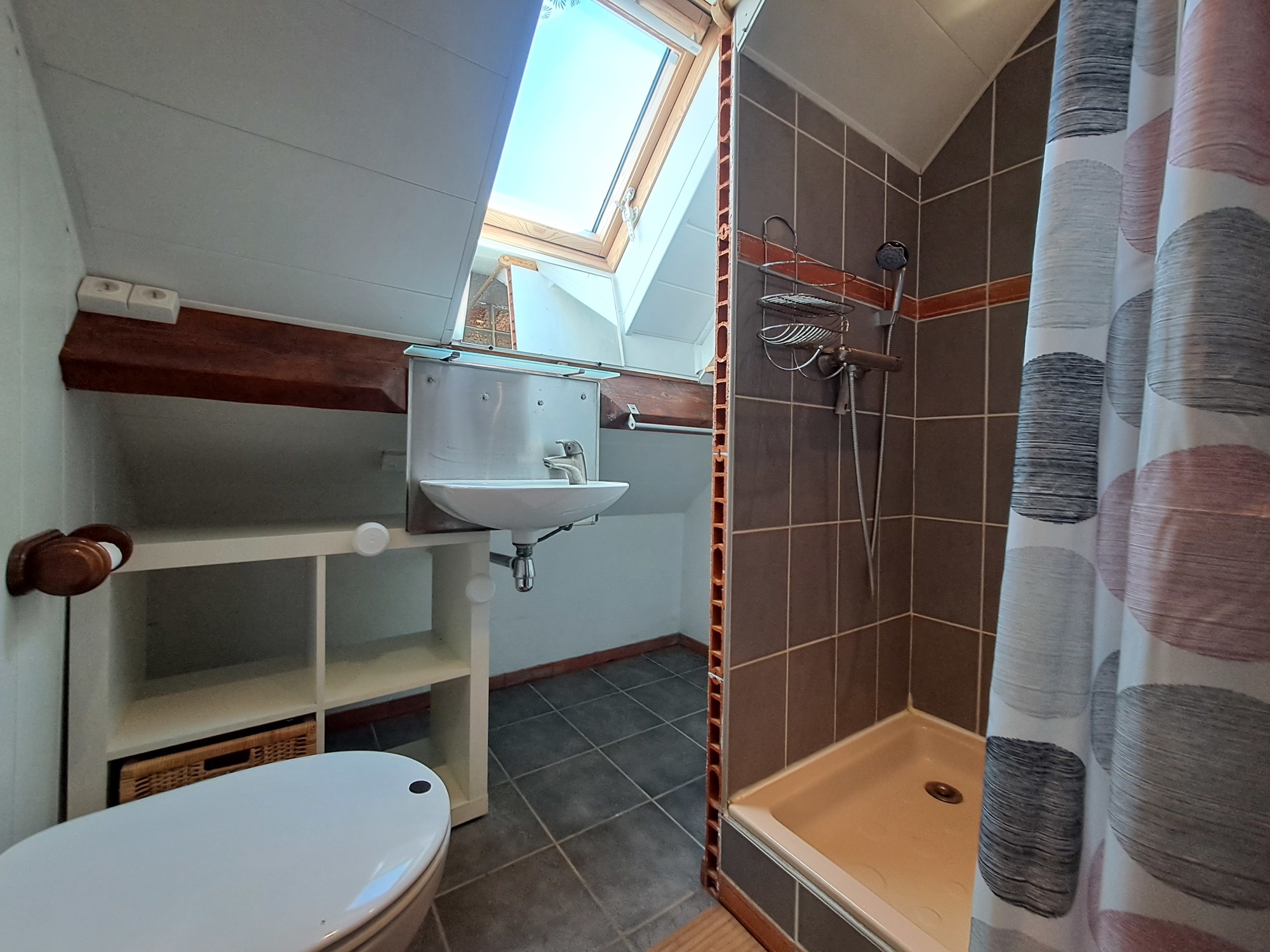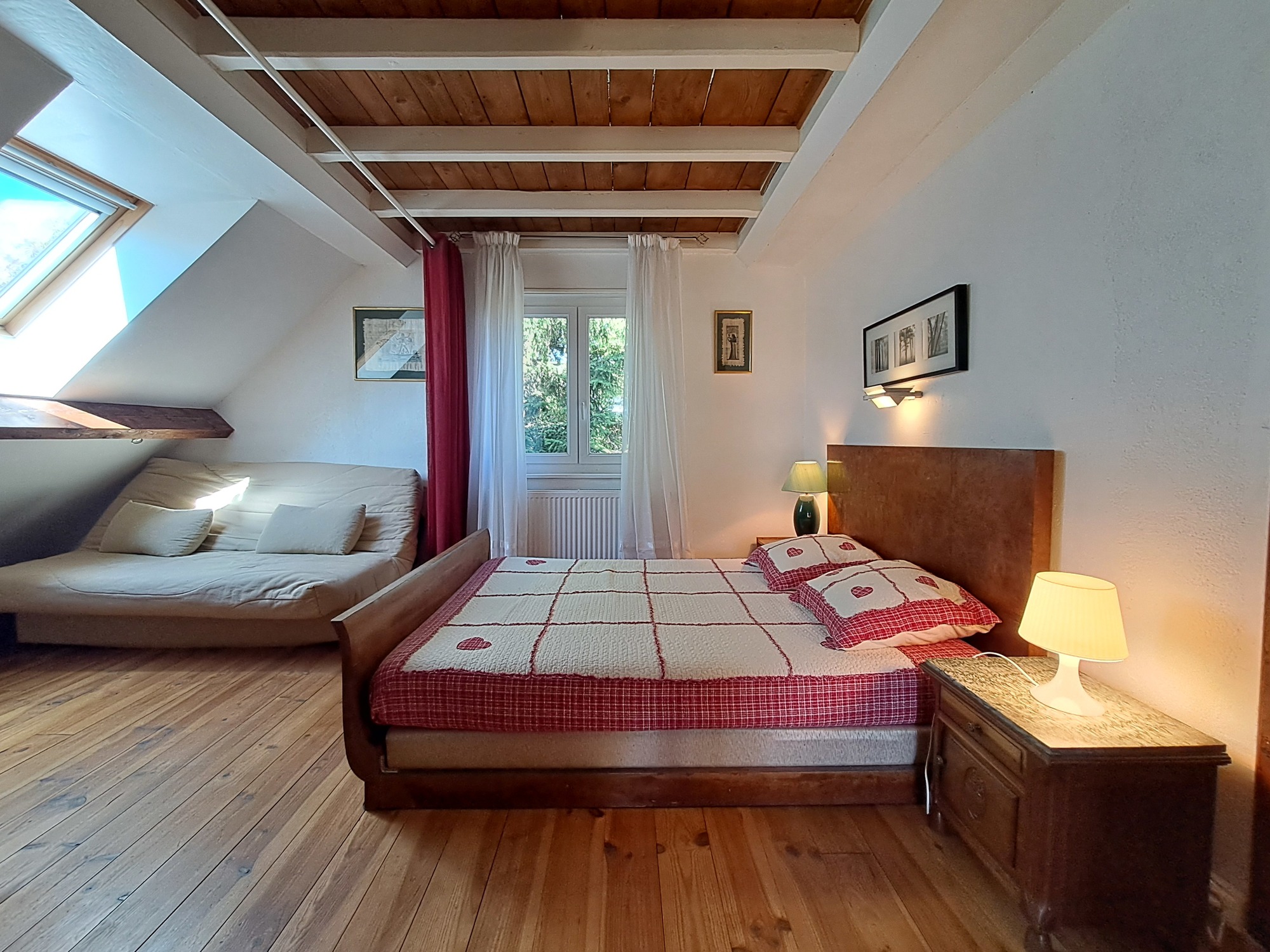 A l'étage vous trouverez une chambre avec un lit en 160cm et une seconde chambre avec 1 lit en 140cm et un canapé convertible en 140cm, une salle d'eau avec WC complète le tout.