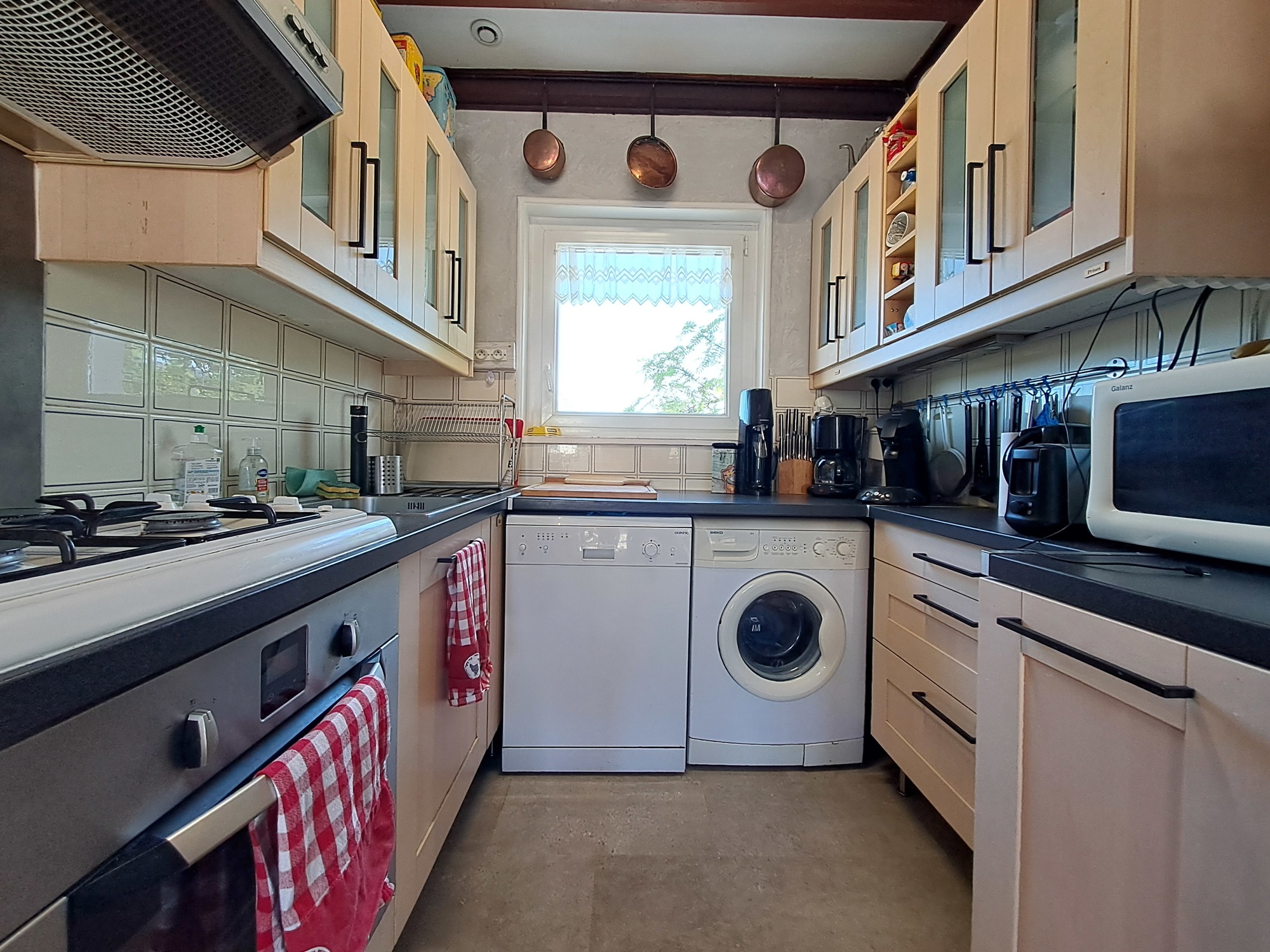 Cette maison de 90m2 au village de la Cure est composée d’un rez-de-chaussée avec coin cuisine ouvert sur un séjour, d'un coin salon fermé avec canapé convertible en 140cm , d'une chambre avec un lit en 140cm , ainsi qu'une salle d'eau et un WC indépendant.
