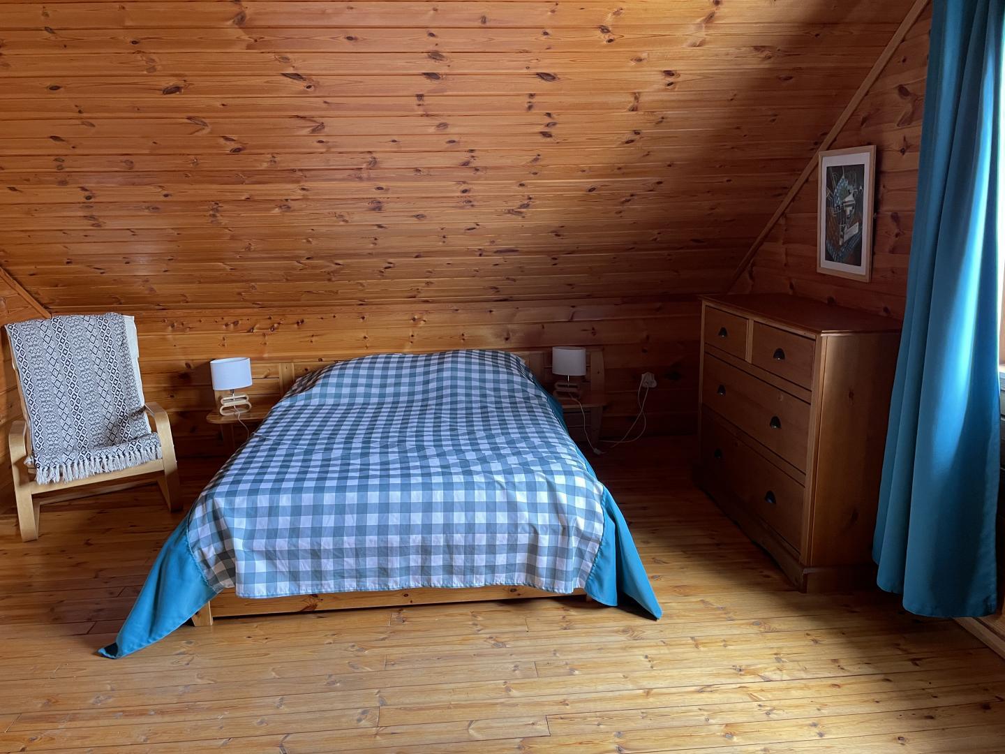 Dans un cadre naturel, chalet bois (MELEZE) entièrement neuf et indépendant, situé sur un terrain comportant 4 autres gîtes. Cuisine intégrée toute équipée (micro-ondes), salon-séjour (poêle à bois) avec de grandes baies vitrées ouvrant sur la terrasse, salle d'eau (douche hydrothérapie et sauna finlandais pour 4 pers), ch1 1 lit 2 pl, buanderie (sèche-linge). A l'étage : salon en mezzanine (canapé-lit 2 pl), ch2:1 lit 2 pl + 2 lits 1 pl superposés. Chauffage électrique et poêle à bois. Terrain attenant non clos, salon de jardin, barbecue. Option ménage à 60E. Piscine, tennis et terrain de jeux municipal à 100 m.
