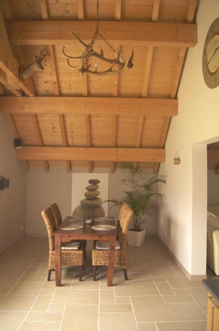 Ce gîte situé au 1er étage de la maison des propriétaires se compose d'une pièce de vie avec cuisine toute équipée, d'une salle à manger, d'un salon avec TV écran plat et console XBOX avec jeux, de 2 chambres avec 2 lits double donnant chacune accès à la salle d'eau avec WC indépendant.Côté extérieur : salon de jardin, barbecue, transat et trampoline. Vous pourrez vous rendre au centre-ville en 10 minutes à pied où vous trouverez tous les commerces : restaurants, pharmacie, coiffeur, boulangerie, boucherie, fromagerie... Saint-Laurent est également le lieu de départ idéal pour les randonnées pédestres, le ski de fond et les raquettes