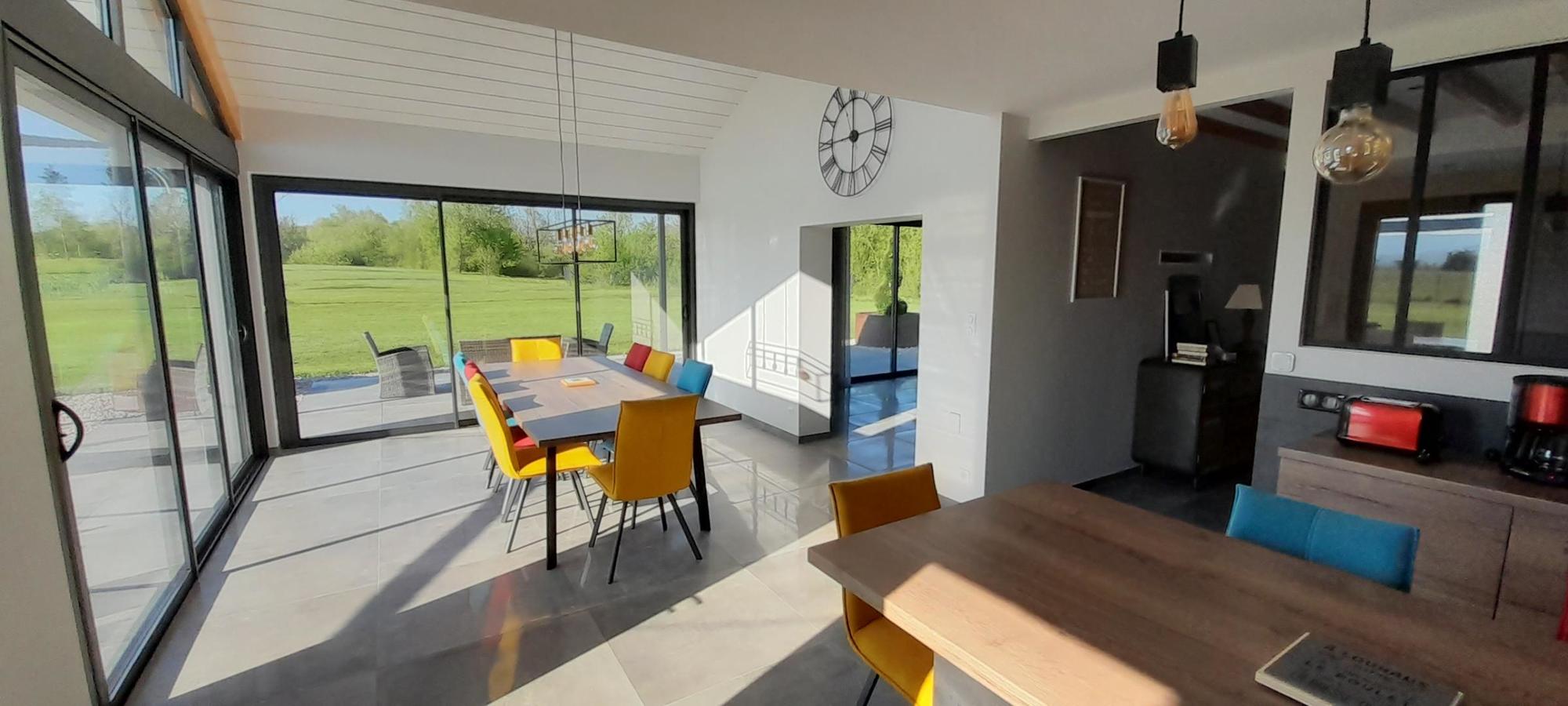 Envie de calme et d'espace tout en profitant de prestations haut de gamme, alors ne cherchez plus , ce gîte est fait pour vous! Située dans un écrin de verdure, sur un vaste terrain de 117 ares, cette maison moderne aménagée dans un ancien atelier saura vous séduire par sa vaste pièce de vie lumineuse comprenant une cuisine toute équipée, une salle à manger, un salon avec TV et cheminée à bois (utilisable uniquement en hiver). 2 chambres avec chacune des lits simples pouvant être jumelés pour obtenir un lit king-size, une salle d'eau avec douche à l'italienne et WC, un WC indépendant et une buanderie avec lave-linge et sèche-linge complètent le RDC. Chaque chambre est équipée de volets roulants électriques. Côté extérieur, une terrasse avec salon de jardin, salon de détente, barbecue et plancha, transats vous permettront de profiter de la quiétude des lieux et d'admirer la nature environnante. Vous pourrez également vous balader autour de l'étang privé (une vigilance particulière doit être apportée envers les enfants car il n'y a pas de clôture) ou défier vos amis autour d'une pétanque (boules fournies). Un carport vous permettra d'entreposer vos voitures, des barques ou des bateaux et un local fermé est également à votre disposition pour vos vélos ou motos. Les amoureux de la pêche et des promenades en bateau seront comblés avec le Port de la Saisse à 1 km et le Port du Meix au Pont de la Pyle à 10 kms. Pour la baignade, le lac de Clairvaux avec sa plage aménagée et surveillée se situe à 10 mns. De nombreux circuits pédestres et cyclotourisme se trouvent aux alentours du gîte. Et bien sûr n'oubliez pas de faire un halte dans une fruitière pour déguster le célèbre Comté. Le RDC est accessible PMR (douche avec siège, WC, et largeur de porte de 90 cms)