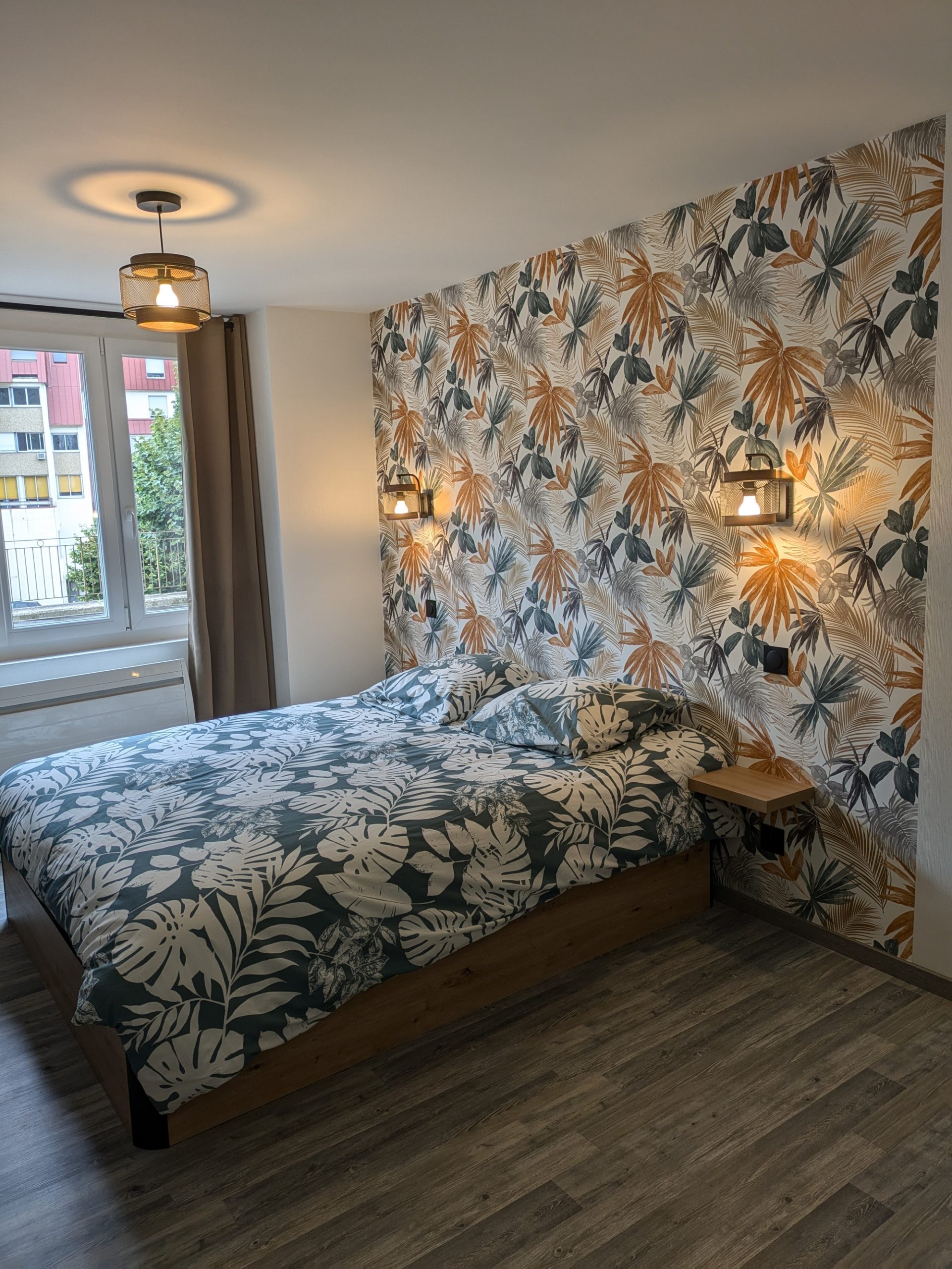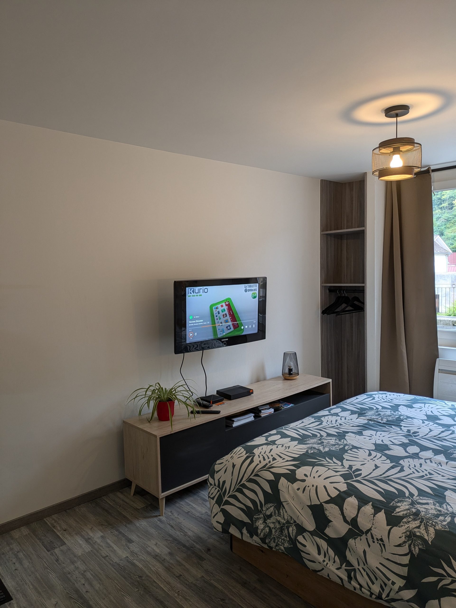 Un coin chambre avec un lit de 160/200 et table de nuit. Une télévision avec accès internet.