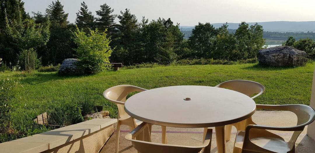Dans un lieu calme au dessus de Clairvaux les lacs, cet appartement de plain-pied bénéficie d'un grand terrain en bordure de forêt. La pièce principale séjour cuisine, éclairée par une grande baie vitrée avec vue sur le lac, de deux fenêtres donnant sur la forêt, est équipée d'un canapé convertible et un fauteuil,d'une télévision à écran plat. Une première chambre avec lit en 140, placard et table ; la deuxième avec deux lits en 90 et un placard. Dans la salle d'eau : douche à l'italienne, sèche-serviettes et sèche-cheveux ; toilettes sont séparées. Dans le hall : lave-linge, fer et planche à repasser ; jeux de société pour adultes et enfants, jeux de plein air. Coté extérieur, vous pourrez profiter d'une terrasse avec salon de jardin, transats et fauteuils, barbecue, grand parasol, d'une vue magnifique sur le lac ; abri à vélo fermé, d'un grand terrain (2500m²) . Idéalement situé à 5 min du centre ville de Clairvaux les Lacs, où vous pourrez accéder à tous les commerces (alimentaires,restaurants, artisanat, pharmacie, médecins). De nombreuses activités vous attendent, plage paddle et canoë-kayak au lac de Clairvaux, randonner à pied ou à vélo à partir de la maison, vous défouler au cours d'une partie de tennis, de paintball ou d'airsoft. Dans un rayon de 10 km vous pourrez découvrir les Cascades du Hérisson, les nombreux lacs aux nuances variées, pratiquer la pêche en lac ou en rivière, l'équitation, découvrir l'artisanat local et les musées… Location à la semaine du dimanche au dimanche