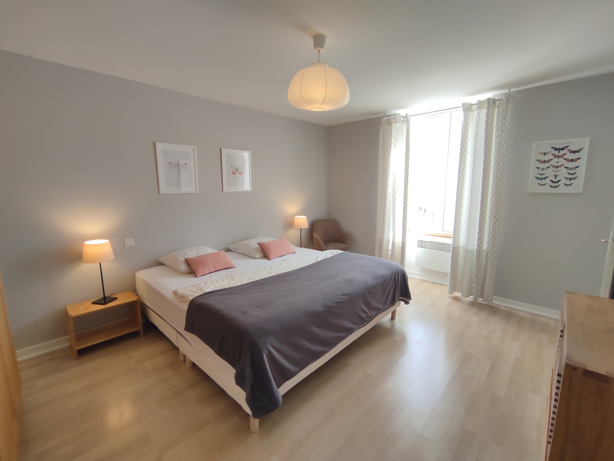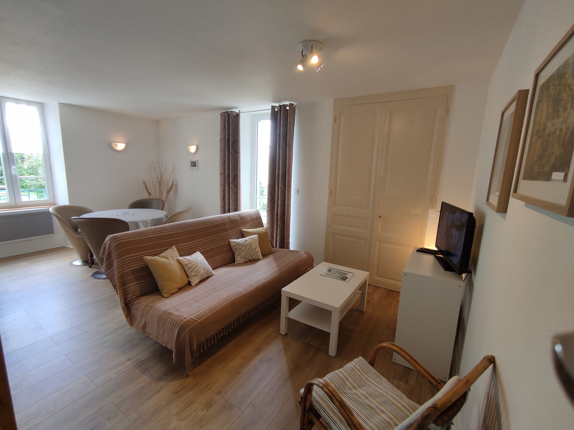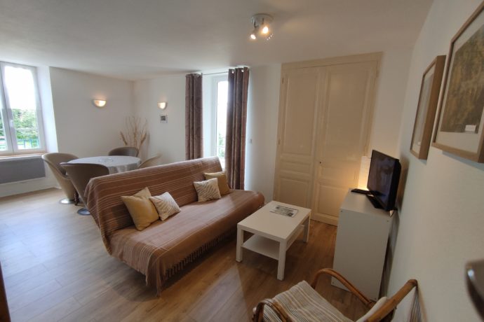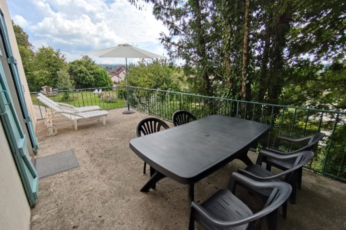 Appartement lumineux avec grande terrasse, 75m² au 1er étage, 2 chambre lit 140 et 2 lits 120, salle de bain baignoire, parc clos avec jeux, mobiliers de jardin, table ping-pong, parking privé. Animaux acceptés. A 200m des commercer, les plages à seulement 300m, situation géographique appréciée: à 10km les emblématiques Cascades du Hérisson et le site des 4 lacs -5 km la Frasnée et de la Fruitière 1900, 20km Lons-le-Saunier, Baume- -les-Messieurs, Château Chalon, Dole, Arbois, Salins les Bains