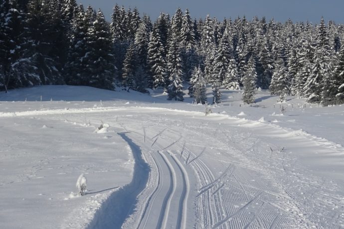 La Piste emprunte la route de Billin, puis bifurque à gauche direction du chalet puis à droite. Elle serpente entre les haies, se faufile entre creux et bosses et revient le long de la forêt. Retour à la route (piste Le Saignot), la traverser pour de nouvelles courbes et bosses, descente de Mouremboz (ancien tremplin) et retour en parallèle à la route.