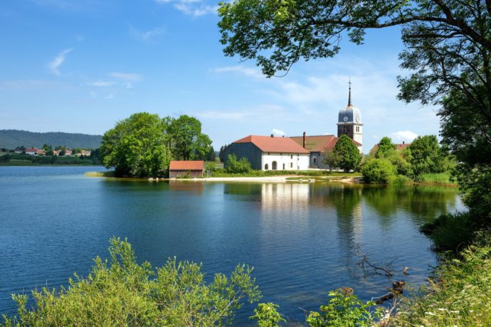 Le paysage et l'âme du Grandvaux se révèlent tout au long de ce parcours emblématique : combes forestières, prés et pâturages et l'église en bord de lac.